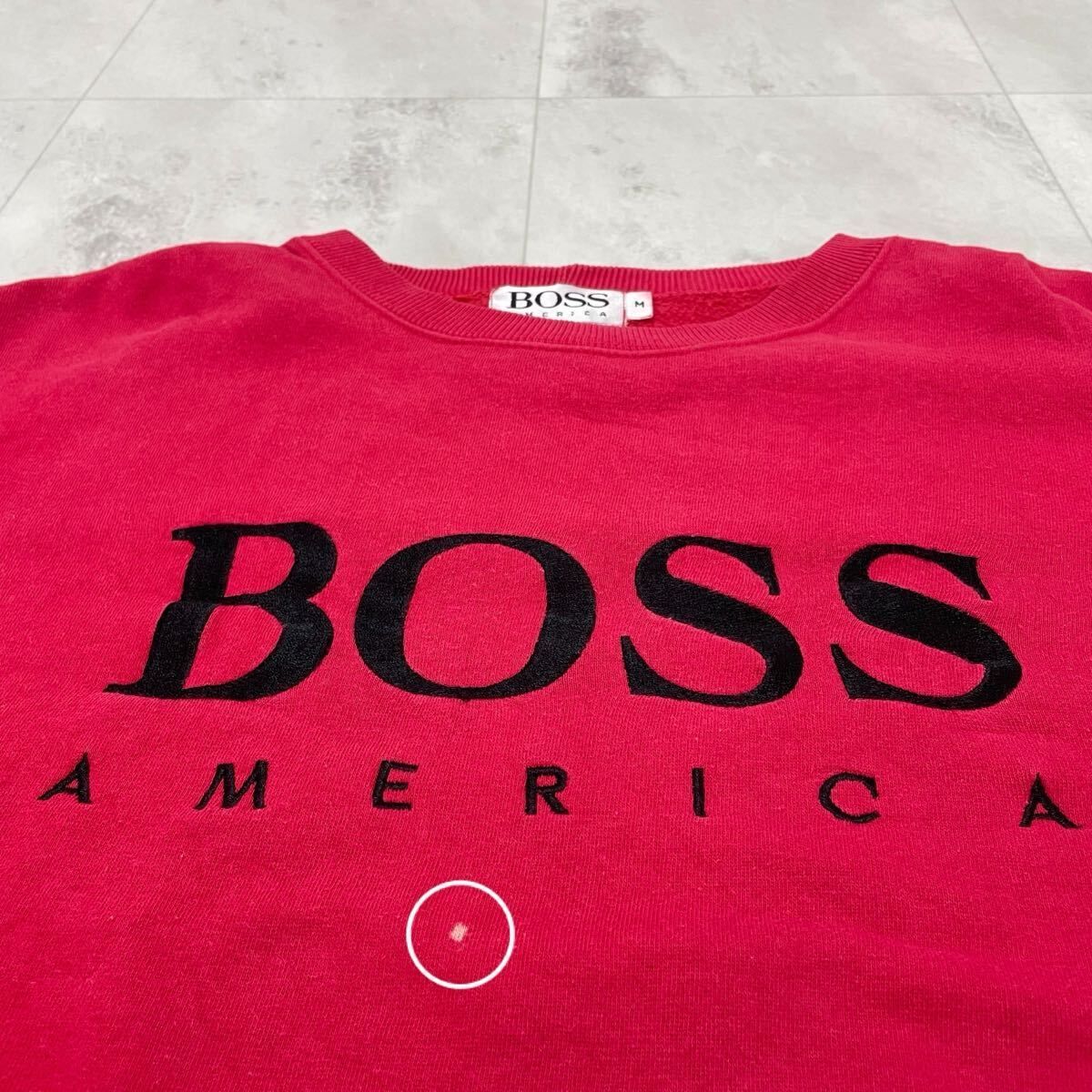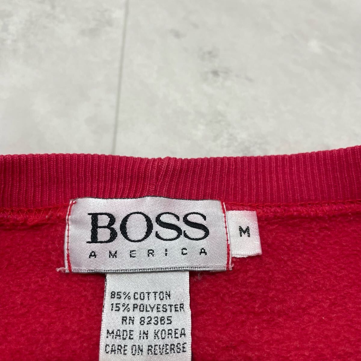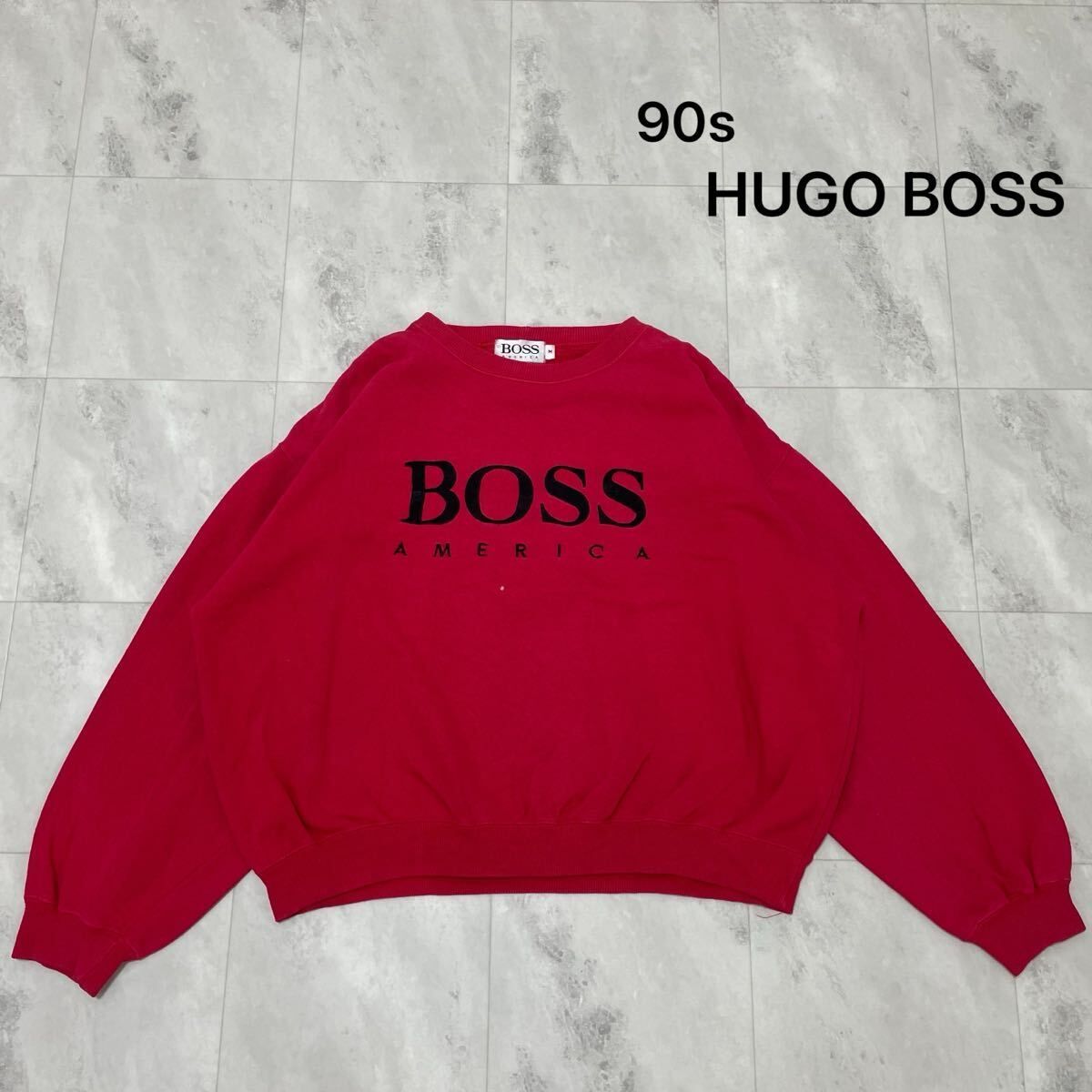 90s HUGO BOSS ヒューゴボス sweat スウェット トレーナー USA企画 ヴィンテージ 刺繍ロゴ レッド レディース サイズM 玉FL3976
