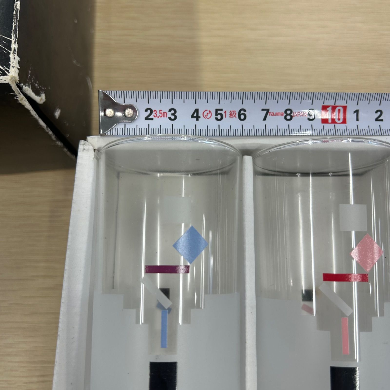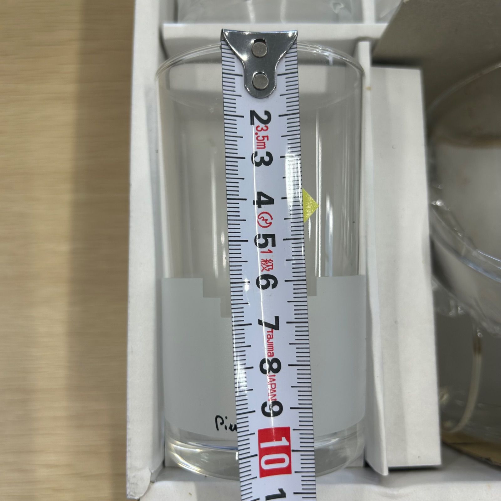 新品未使用品ですが、自宅で長期保管のため箱の縁に擦れが有り、グラスは少しくすみの汚れが有ります。洗えば全て綺麗に取れそうではあります。