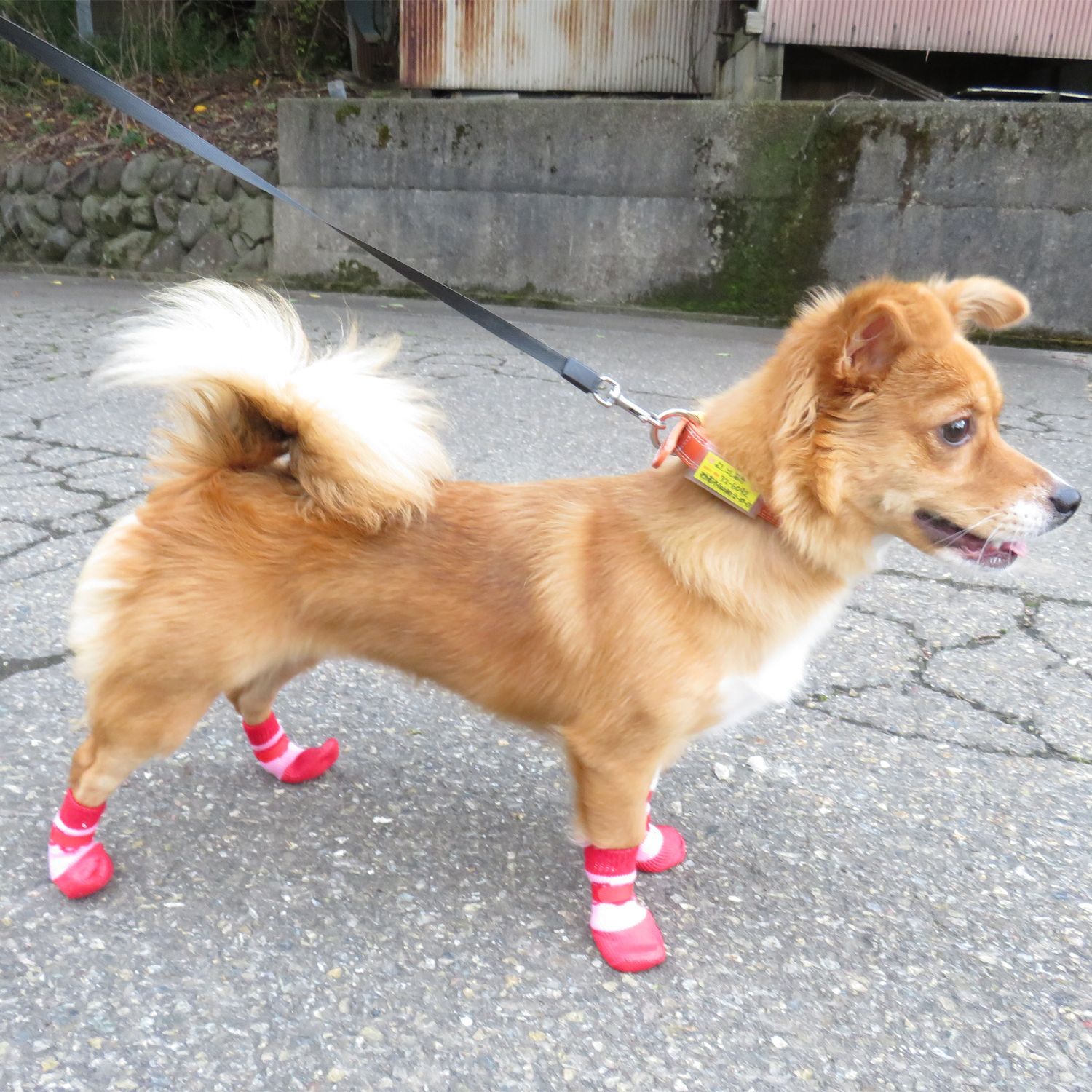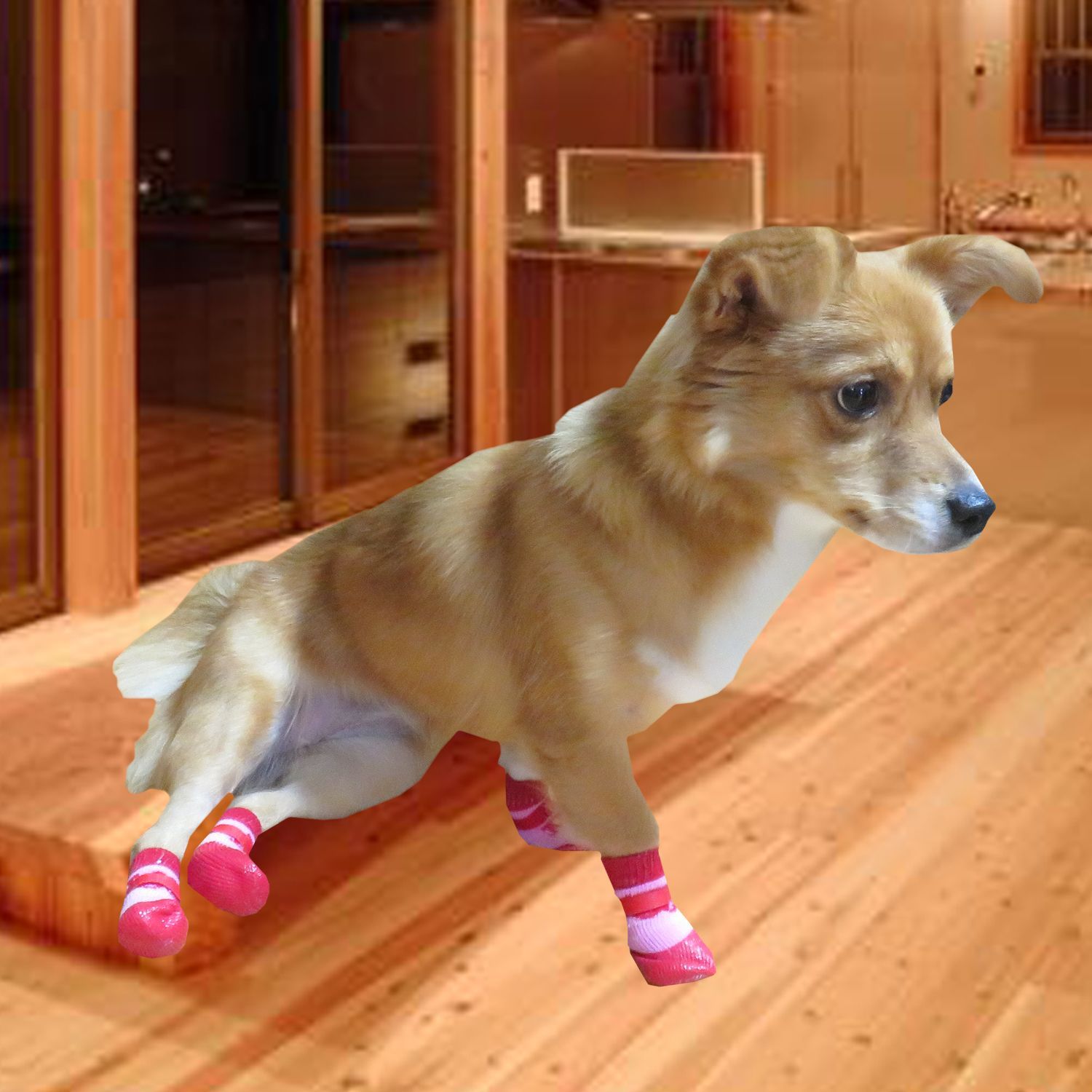 柔らかい生地で、傷から木材の床を保護し晴れた日に外の散策も使える犬用靴下です。