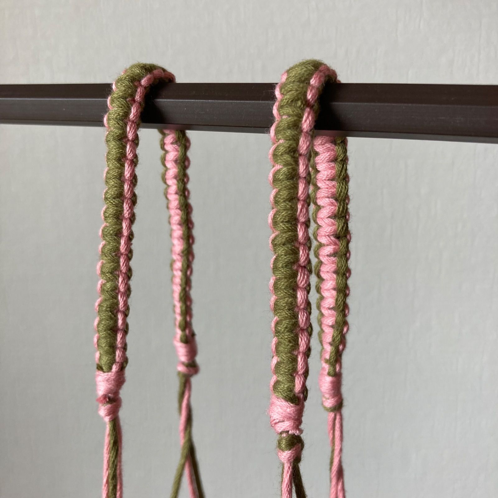 ネットタイプ タピオカドリンクホルダー 太めコットン#薄いピンク×モスグリーン