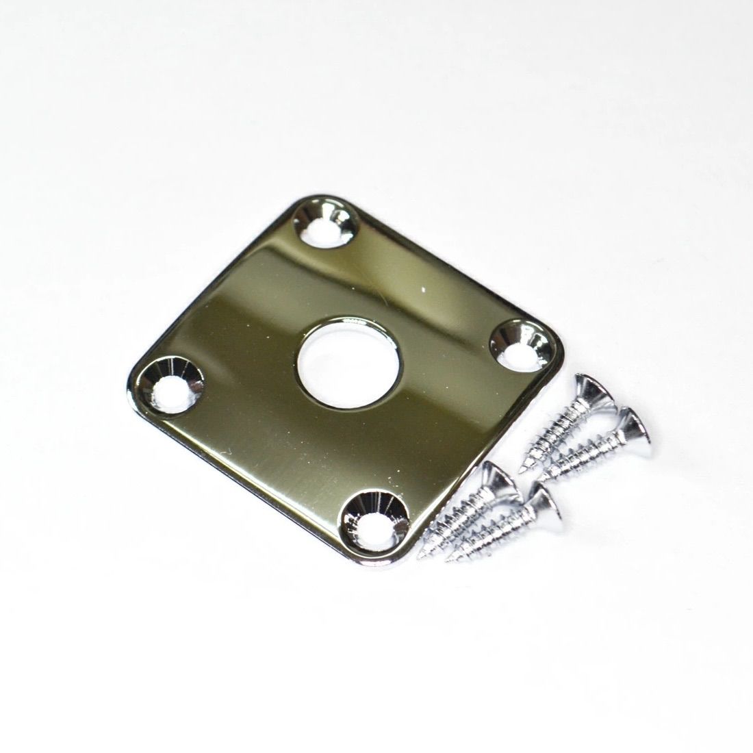 外形34.3×34.3mm レスポール等によく使用される形の金属製のジャックプレートです。
