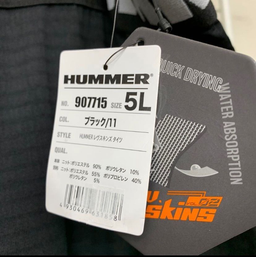 ハマー HUMMER 冬コンプレッション 上下セット販売 907615 11カラー ブラック 5Lサイズ 暖かインナー 保温インナー 冬用インナー ビックサイズ