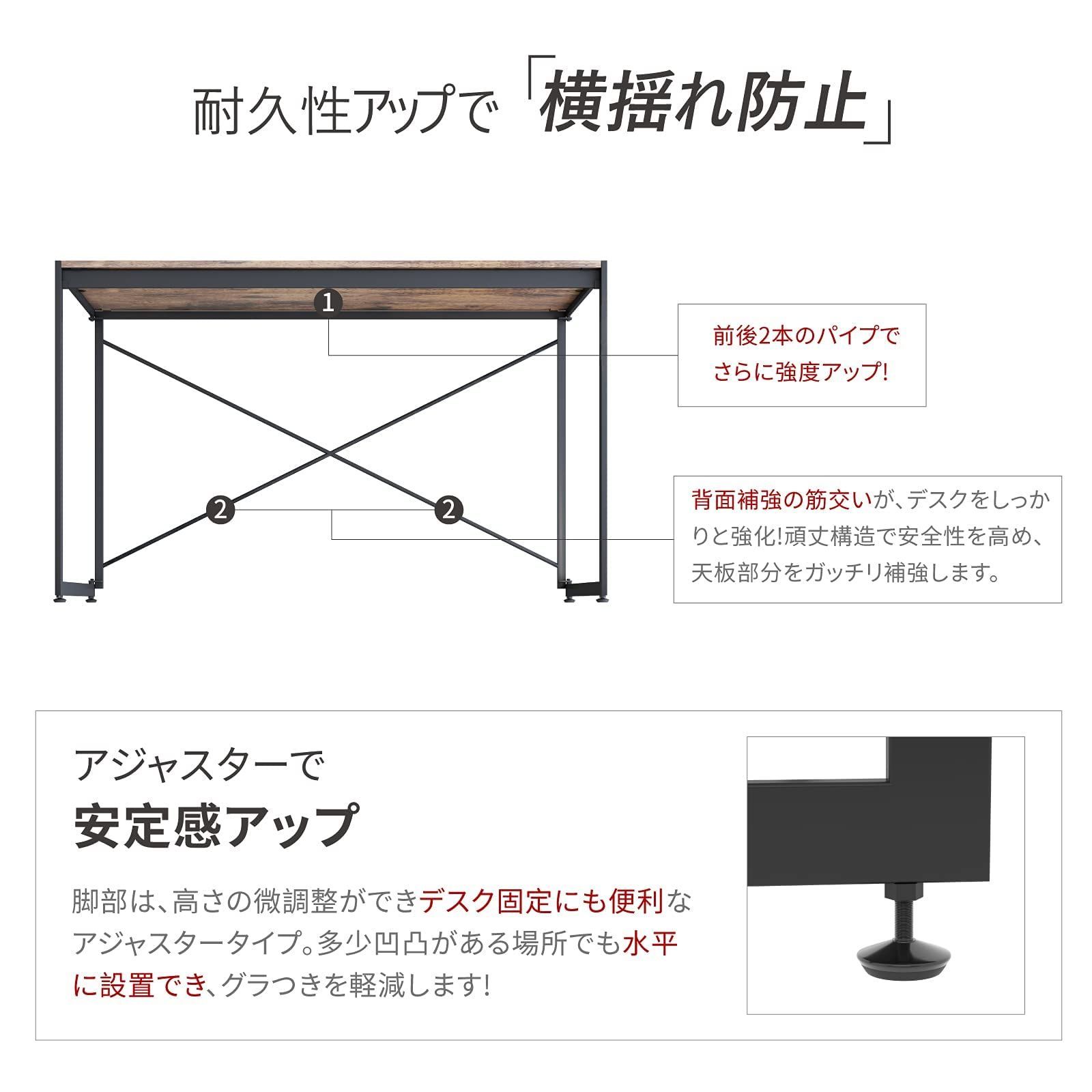 ■【耐荷重約135KG】耐荷重は135kgと余裕があるので、パソコンや周辺機器などをたっぷり載せられます。横揺れを防ぐバックフレームや、デスクのガタつきを抑える脚先のアジャスターを装備しています。