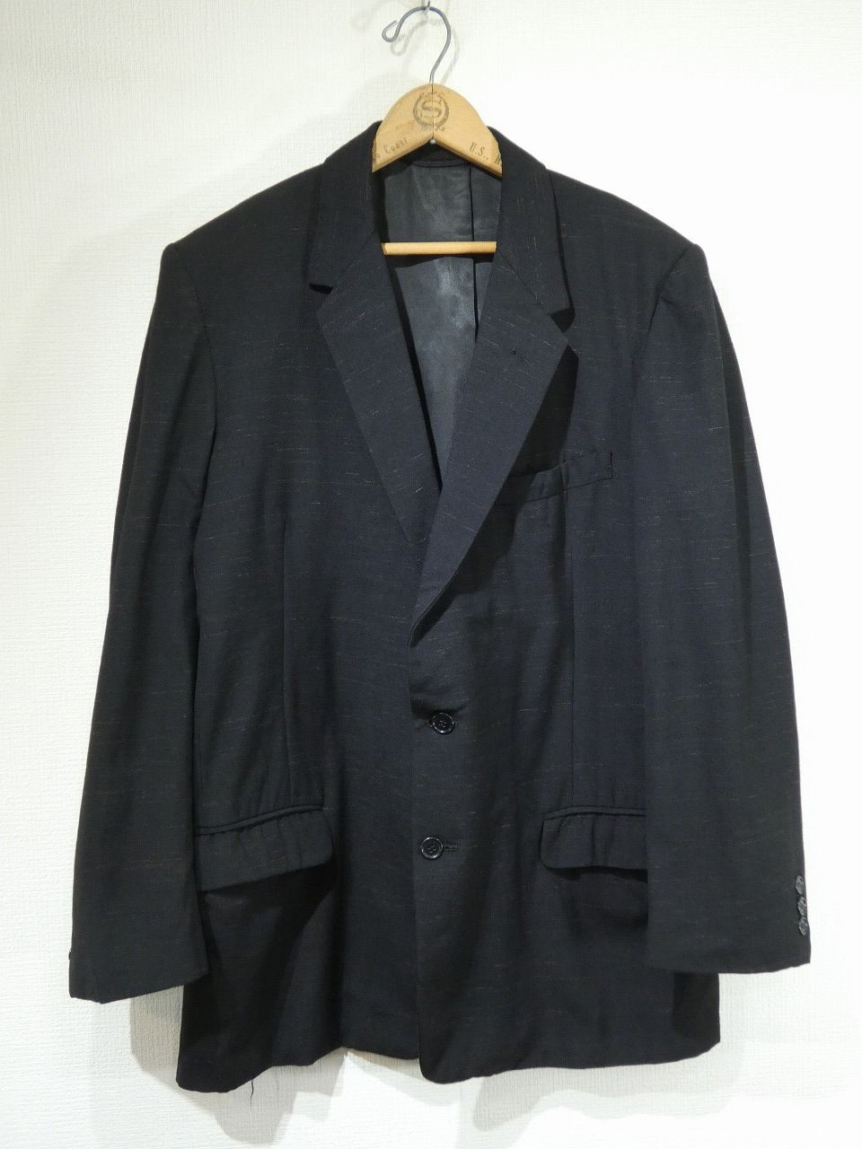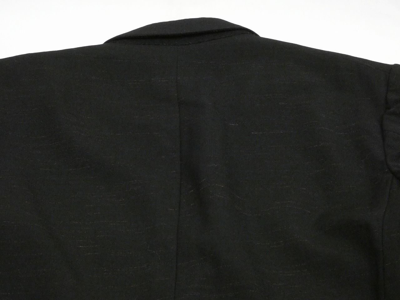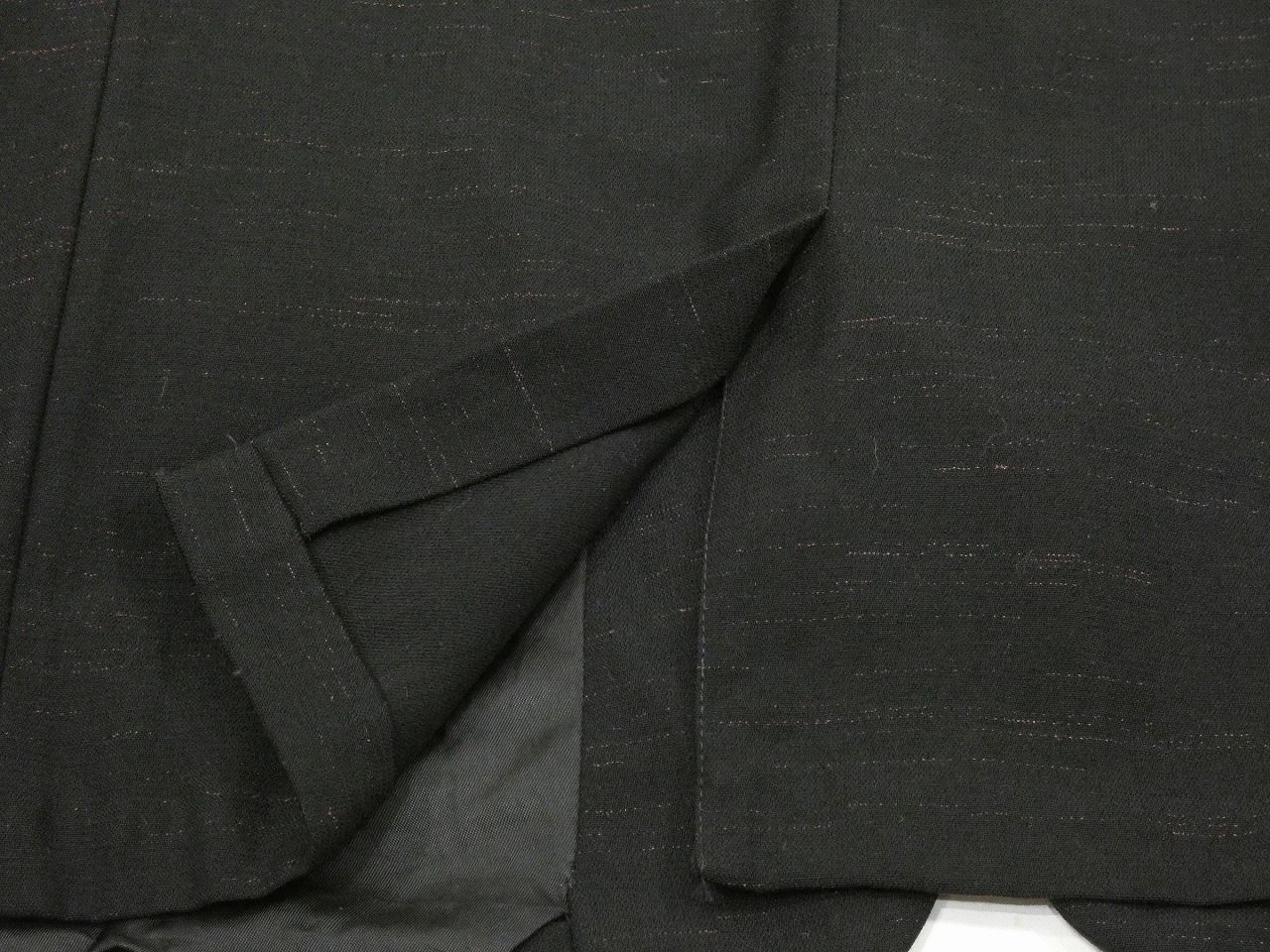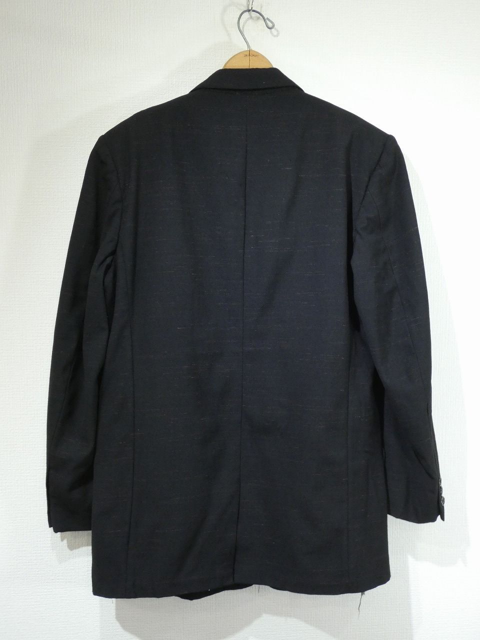 ブラックベースのレーヨンウール地に、ピンクのボーダー状の絣が入ります。デザインは、この年代らしい2つボタンのセンターベンツタイプで、いわゆる黒ピンと呼ばれるカラーはお探しの方も多いと思います。最近ではなかなか良い雰囲気のテーラードも少ないので、お探しだった方は是非、ご検討下さい。
