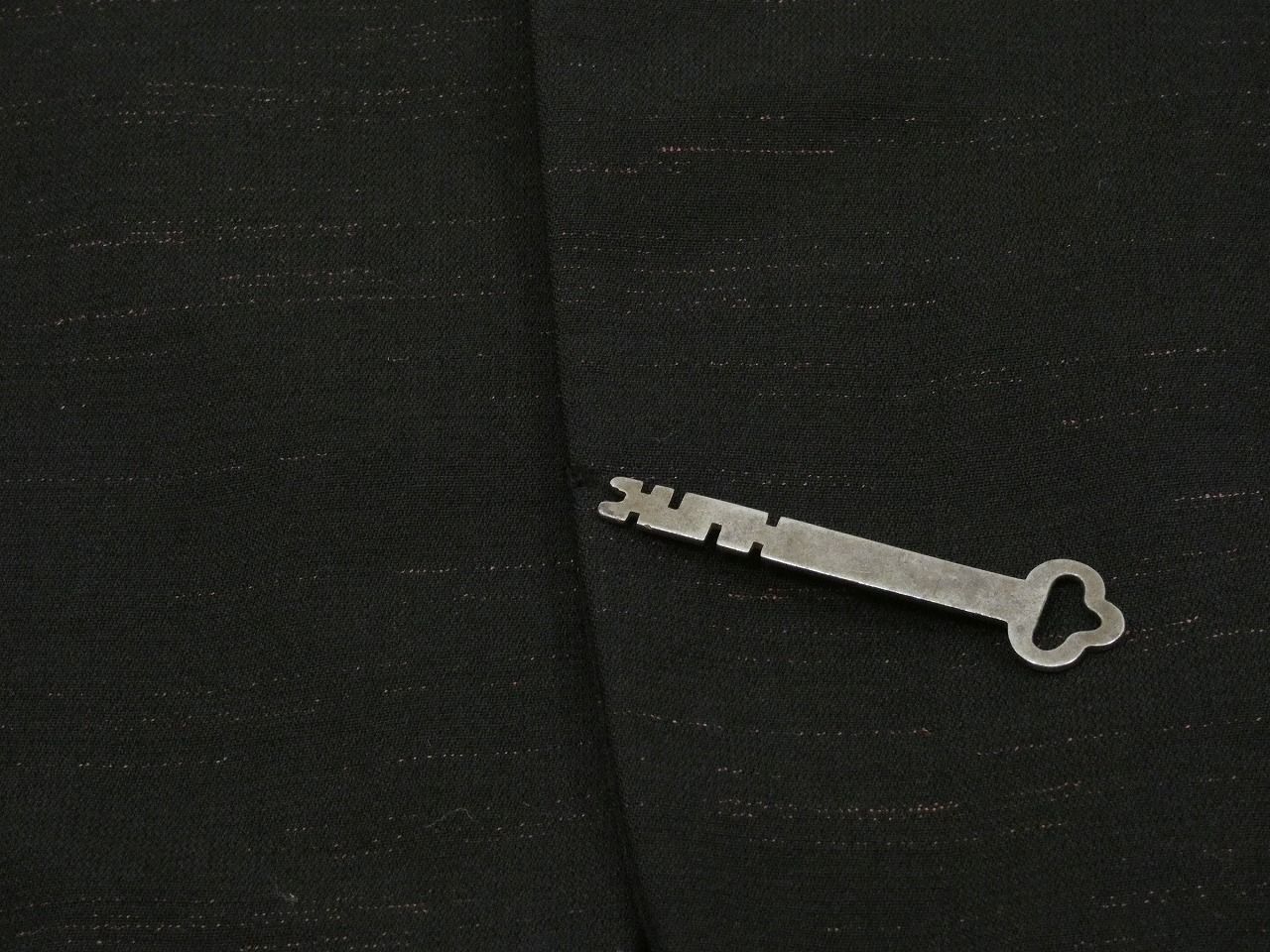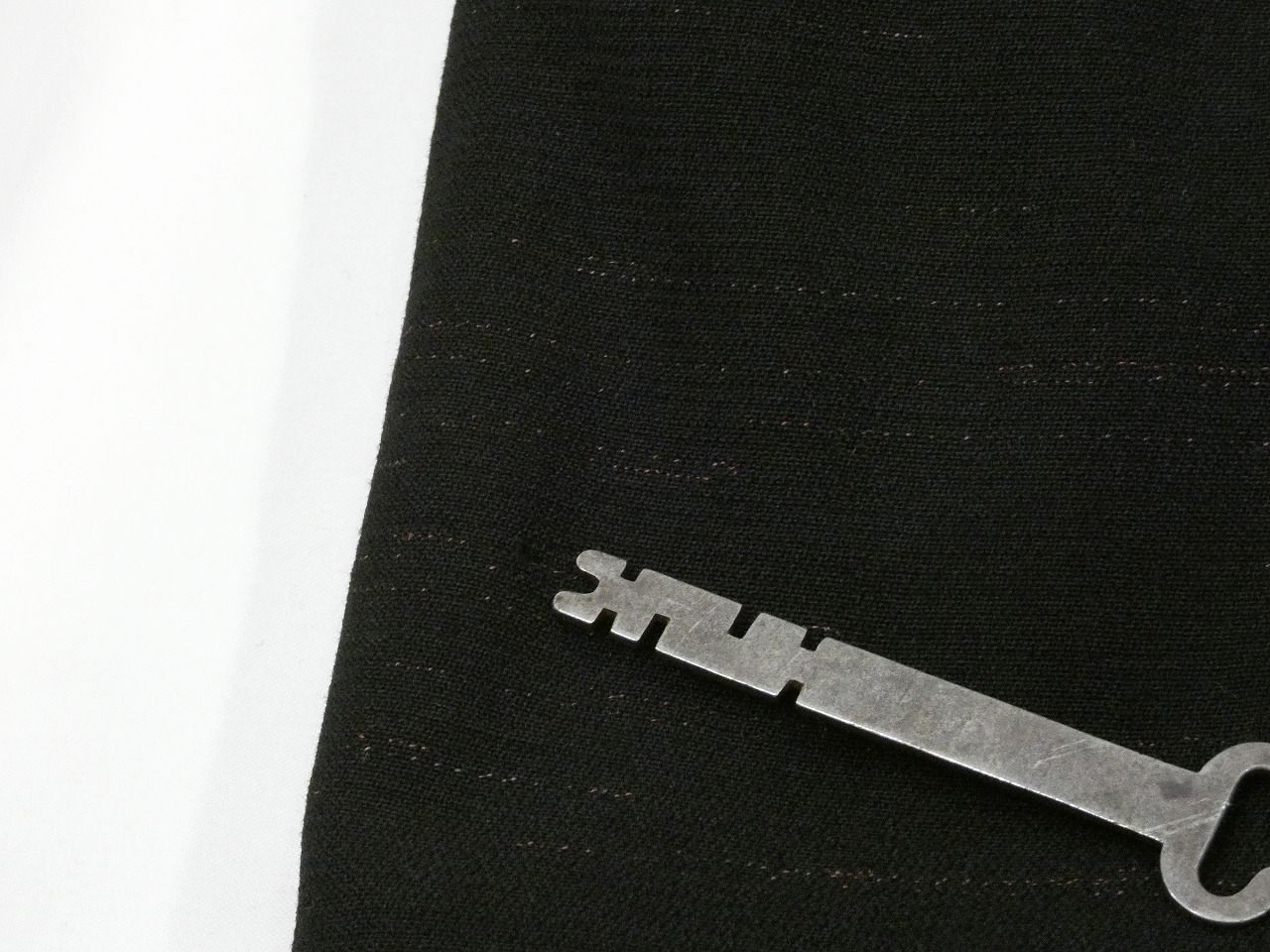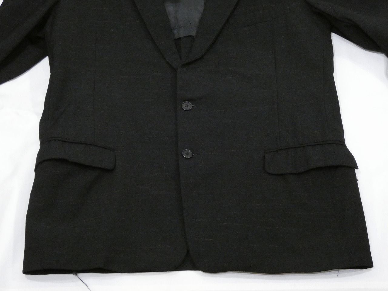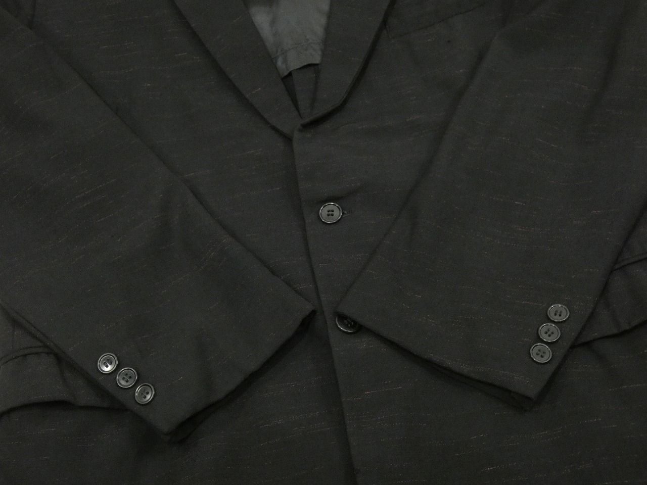 ブラックベースのレーヨンウール地に、ピンクのボーダー状の絣が入ります。デザインは、この年代らしい2つボタンのセンターベンツタイプで、いわゆる黒ピンと呼ばれるカラーはお探しの方も多いと思います。最近ではなかなか良い雰囲気のテーラードも少ないので、お探しだった方は是非、ご検討下さい。