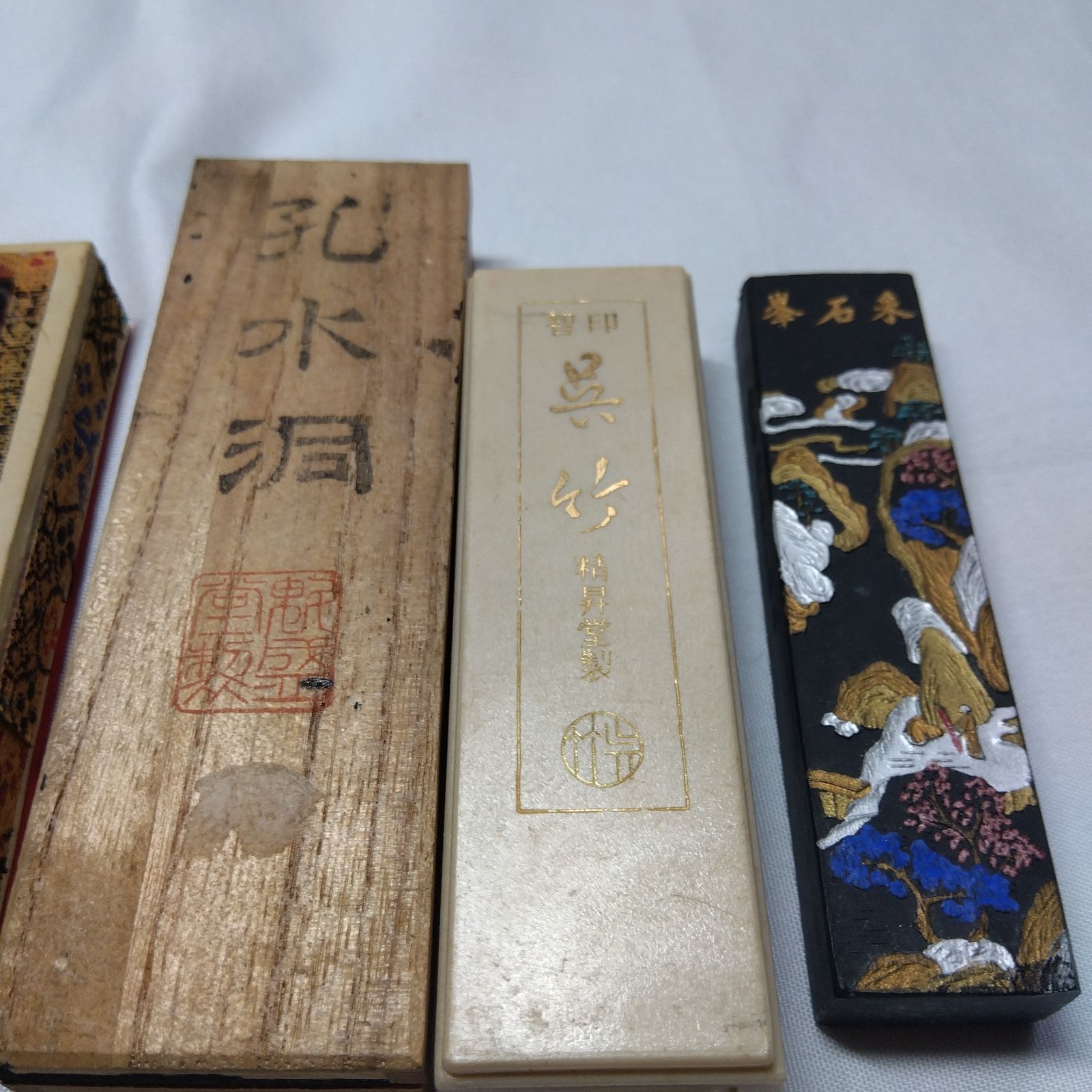 古墨 中国徽墨 胡開文墨厂 書道 木箱 魁盛堂 孔水洞 全4点