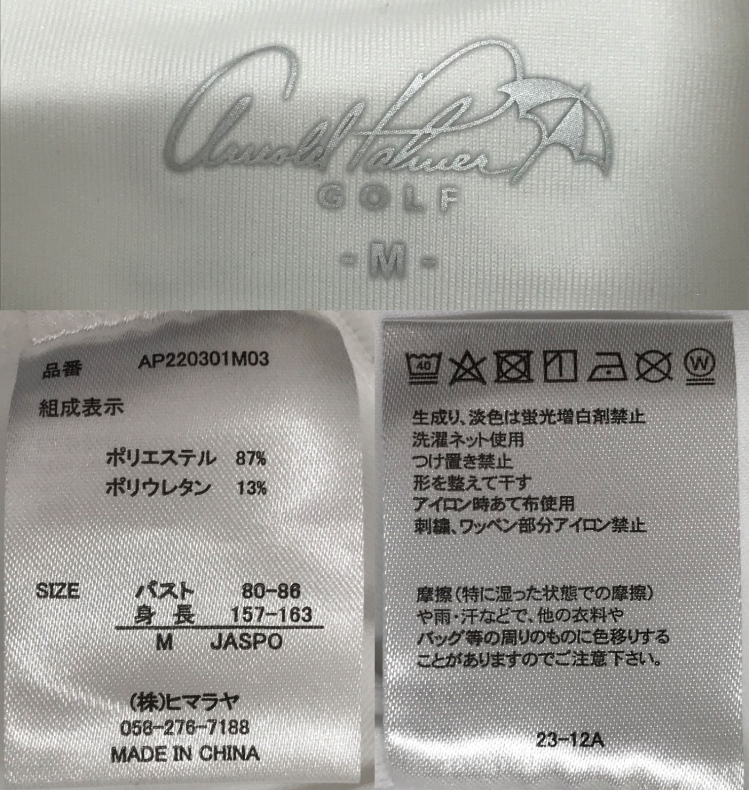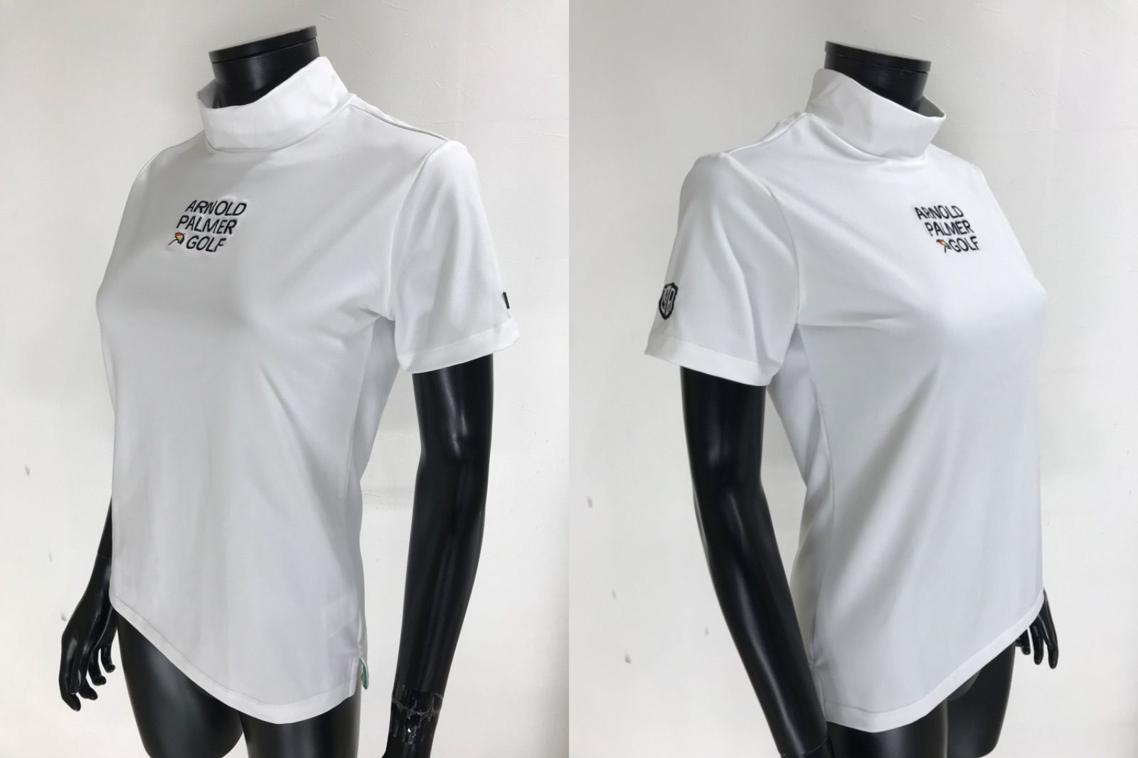 【USED】Arnold Palmer アーノルドパーマー ポリエステル ハイネック 半袖 シャツ ロゴ刺繍 ホワイト 白 レディース M ゴルフウェア