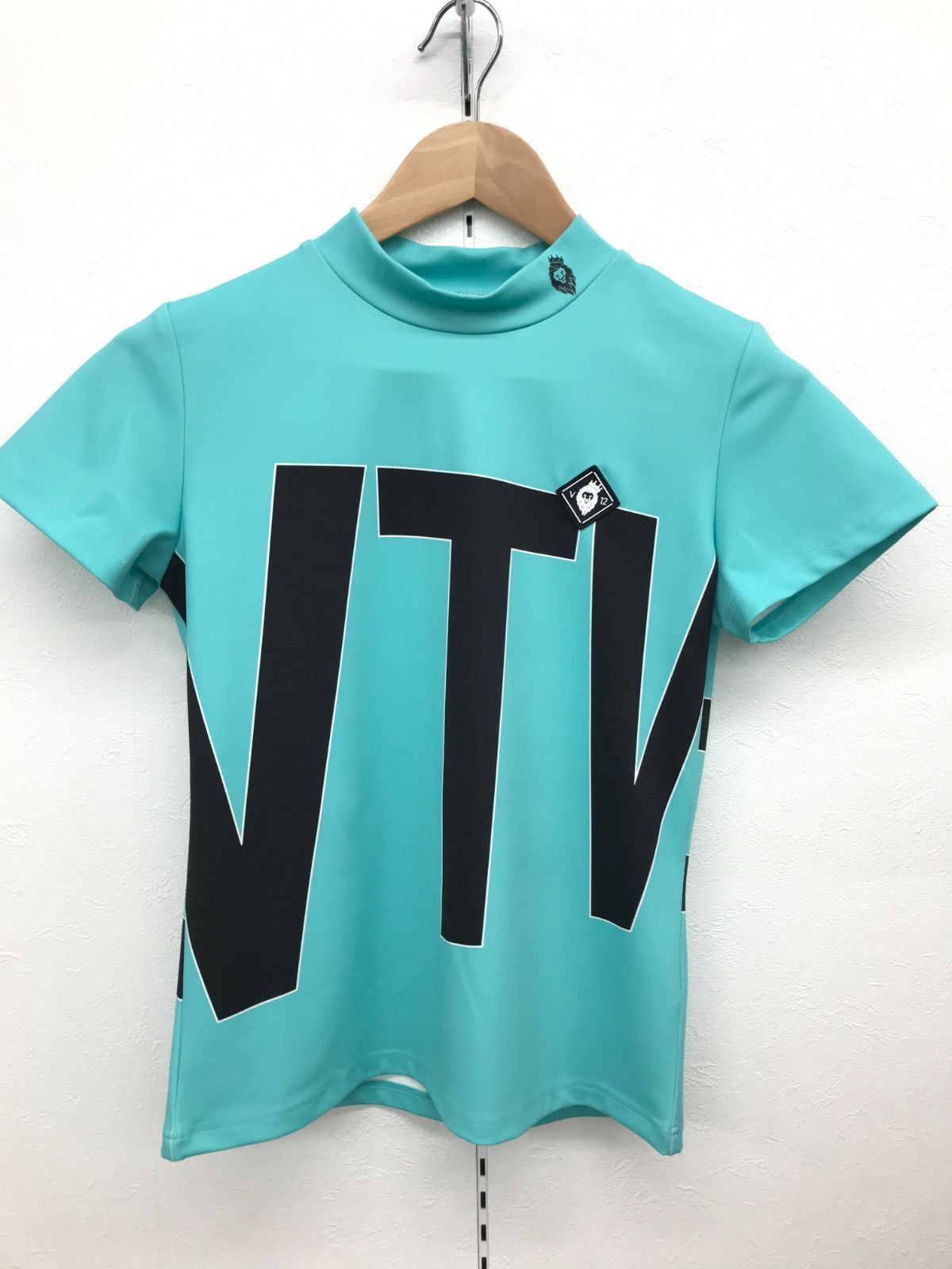 "ボディ全体にプリントで表されたロゴがインパクト抜群のモックネック。
