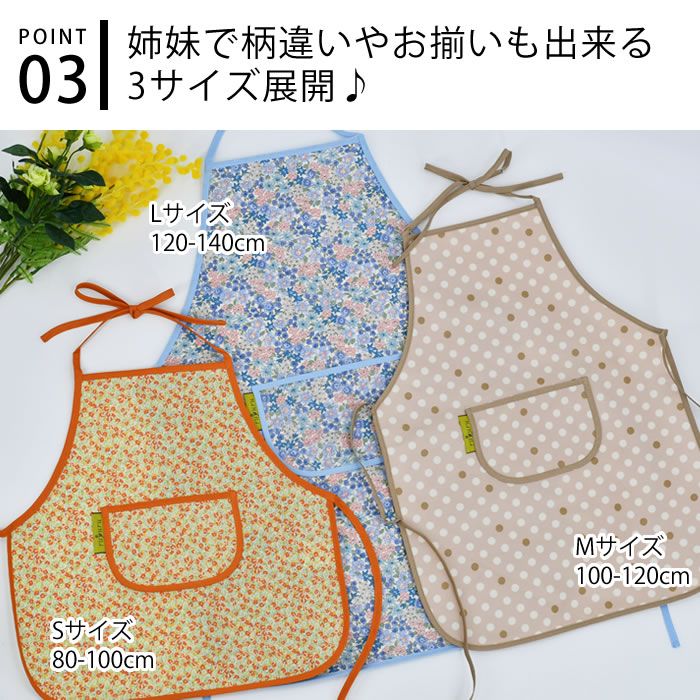 3サイズ展開なので、姉妹で柄違いやお揃いにすることも可能。 日本製の生地を使用し、ベトナムで縫製しています。