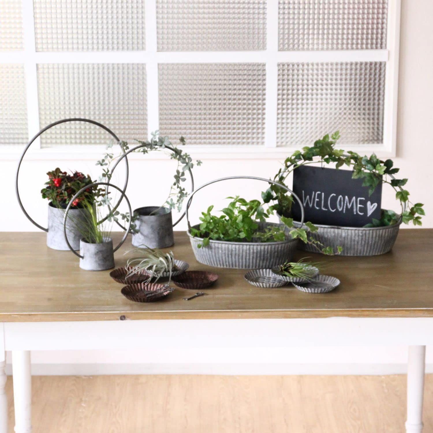 【スタイリッシュなブリキ素材】ブリキ製のこの鉢カバーは、ヴィンテージ感を演出しつつ、耐久性も兼ね備えています。どんなインテリアにもマッチし、長く愛用できるアイテムです。
