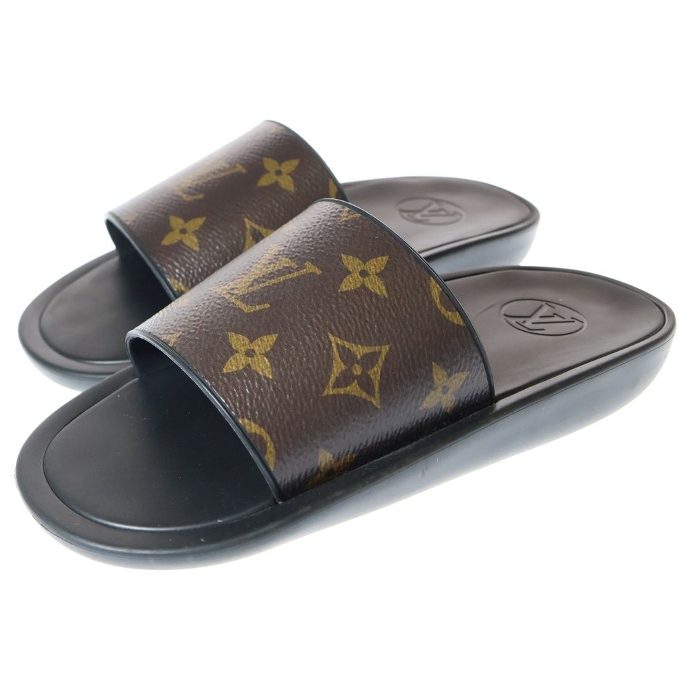 【品名】サンバスライン モノグラム フラット ミュール サンダル ブラック/ブラウン レディース