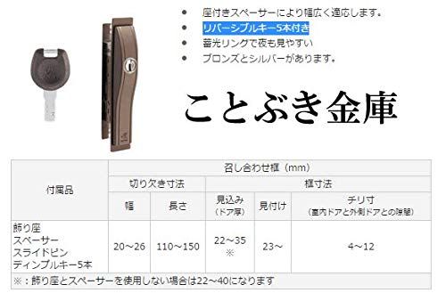 アルファF4056-ALU 引き戸取替錠 引戸向鎌錠 召し合わせ錠 alpha交換用 既存の引き戸錠からの交換におすすめ。ブロンズ色 リバーシブルキーでカギも5本付き