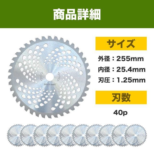 チップソー 草刈り機 替え刃 草刈り機の刃 10枚セット 40P 刈払機