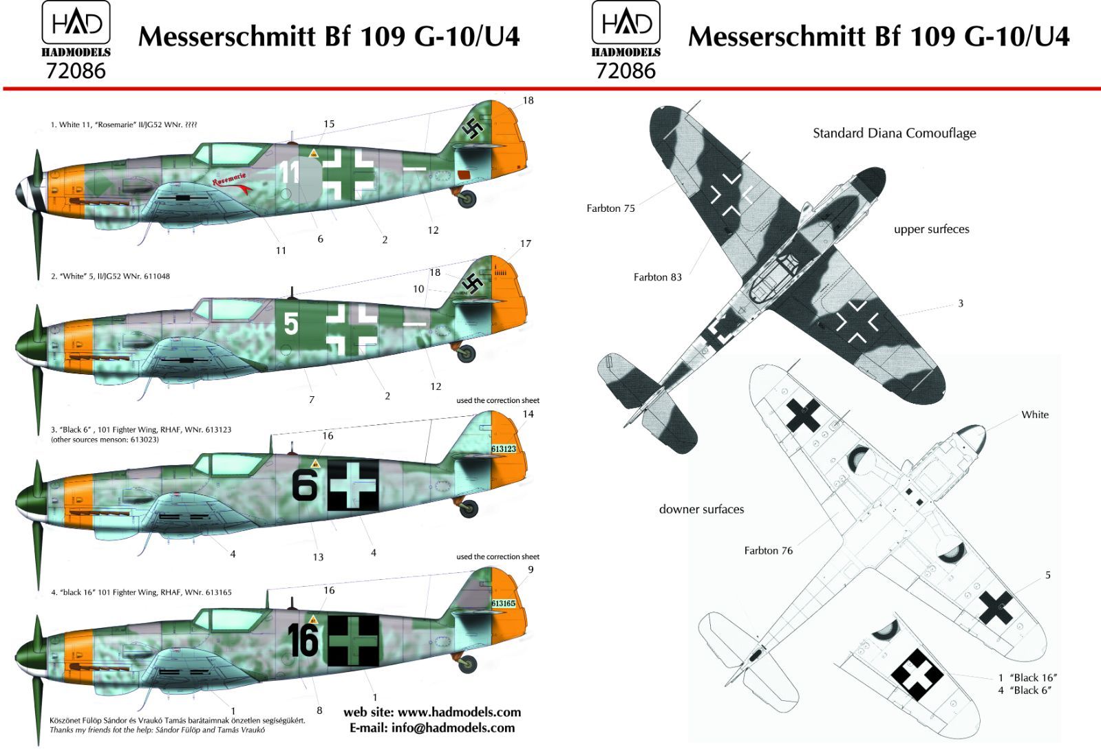 HAD Models 72086 1/72 Messerschmitt Bf 109 G-10 decal sheet