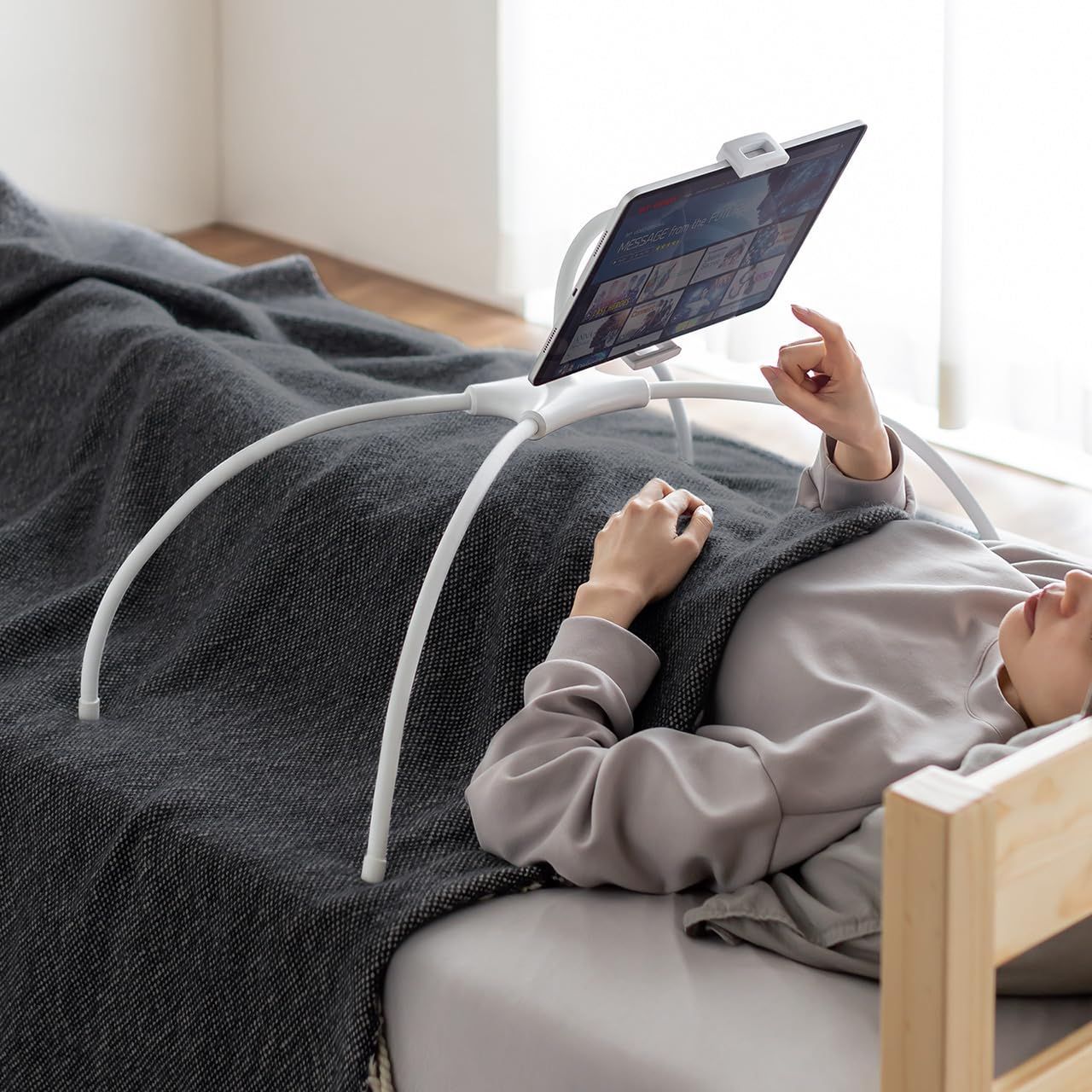 Color:ホワイト サンワダイレクト 寝ながら タブレットスタンド スマホスタンド フレキシブル 4本脚 360度回転 角度調整 アーム 布団 スタンド iPhone/iPad対応 寝ながらタブレット ホワイト 100-LATAB022W