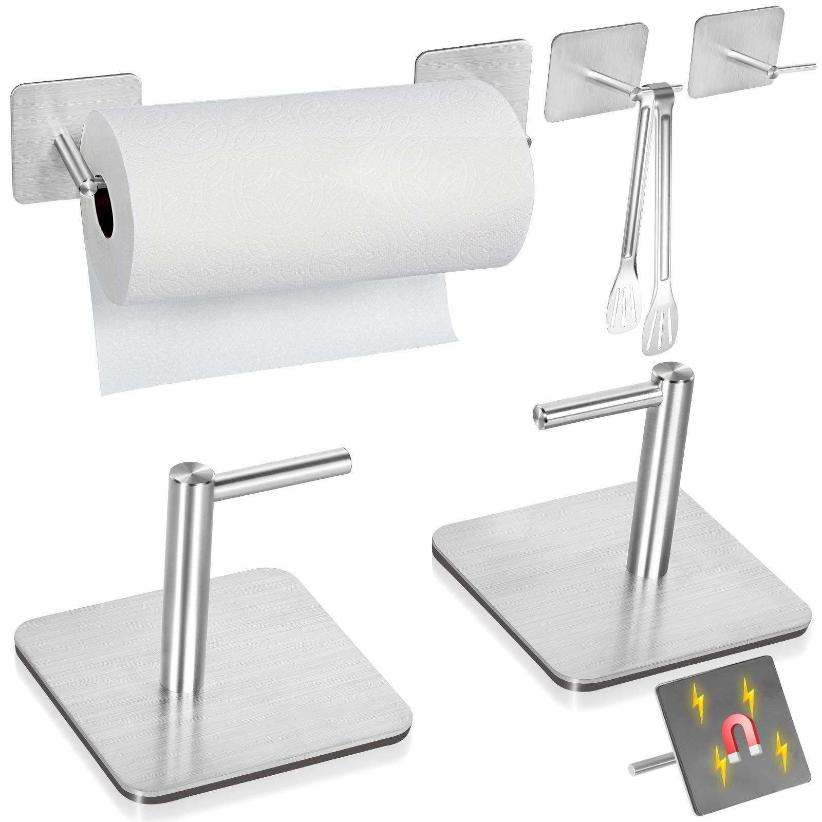 Wowfill キッチンペーパーホルダー マグネット きっちんぺーぱー ホルダー ペーパータオル ホルダー 冷蔵庫 304ステンレス キッチン収納 片手でカット 調節可能 (2個-マグネット-銀)