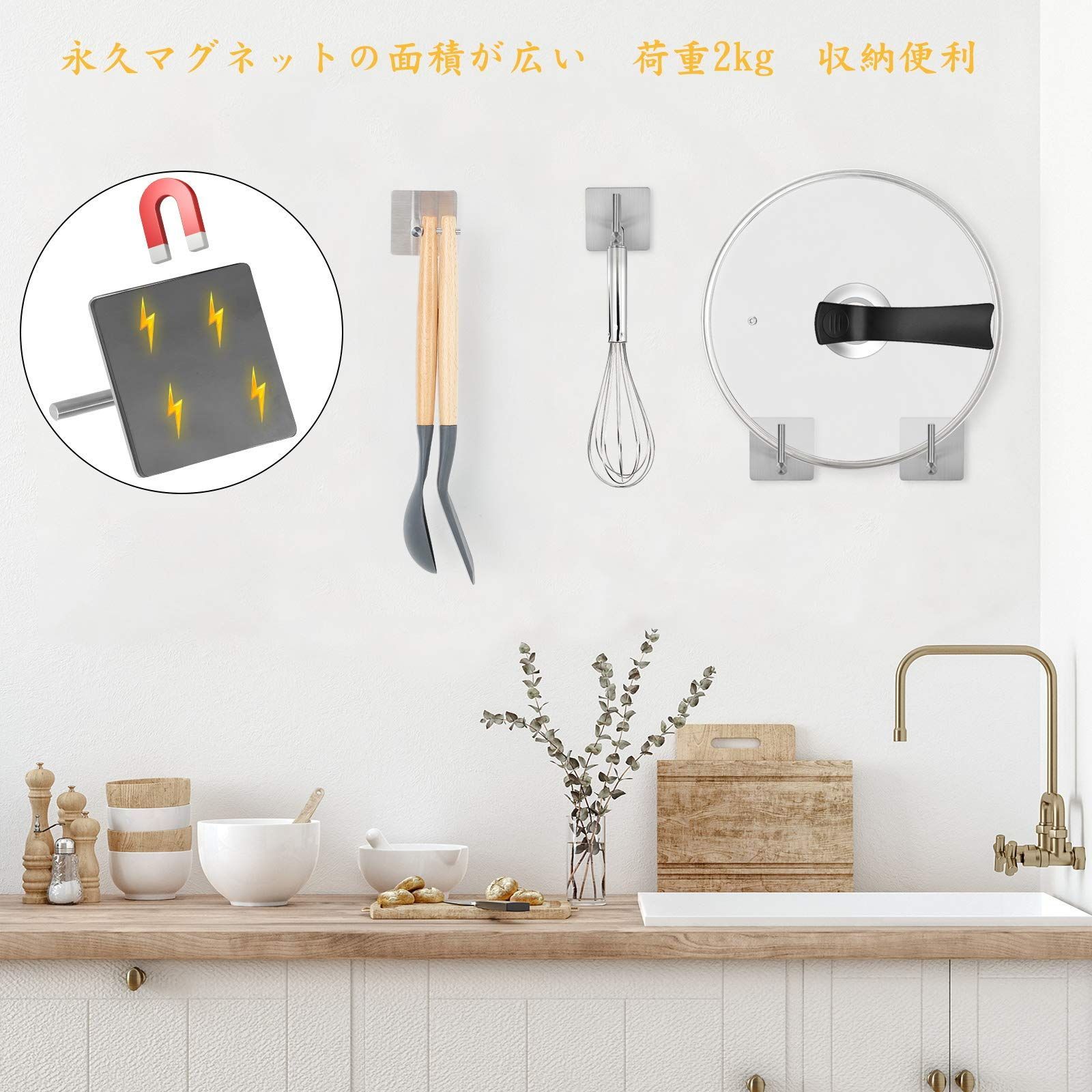 【荷重が最大で2kg】マグネットの吸引面積が広くて荷重が最大で4kgまで受けられますのでご安心にお使いください。ご注意:磁力・負荷は壁面との材料・光沢度に関わりますため、どれくらい荷重できるかまずテストしてください。ただし、ティッシュやタオルなどは大丈夫です。