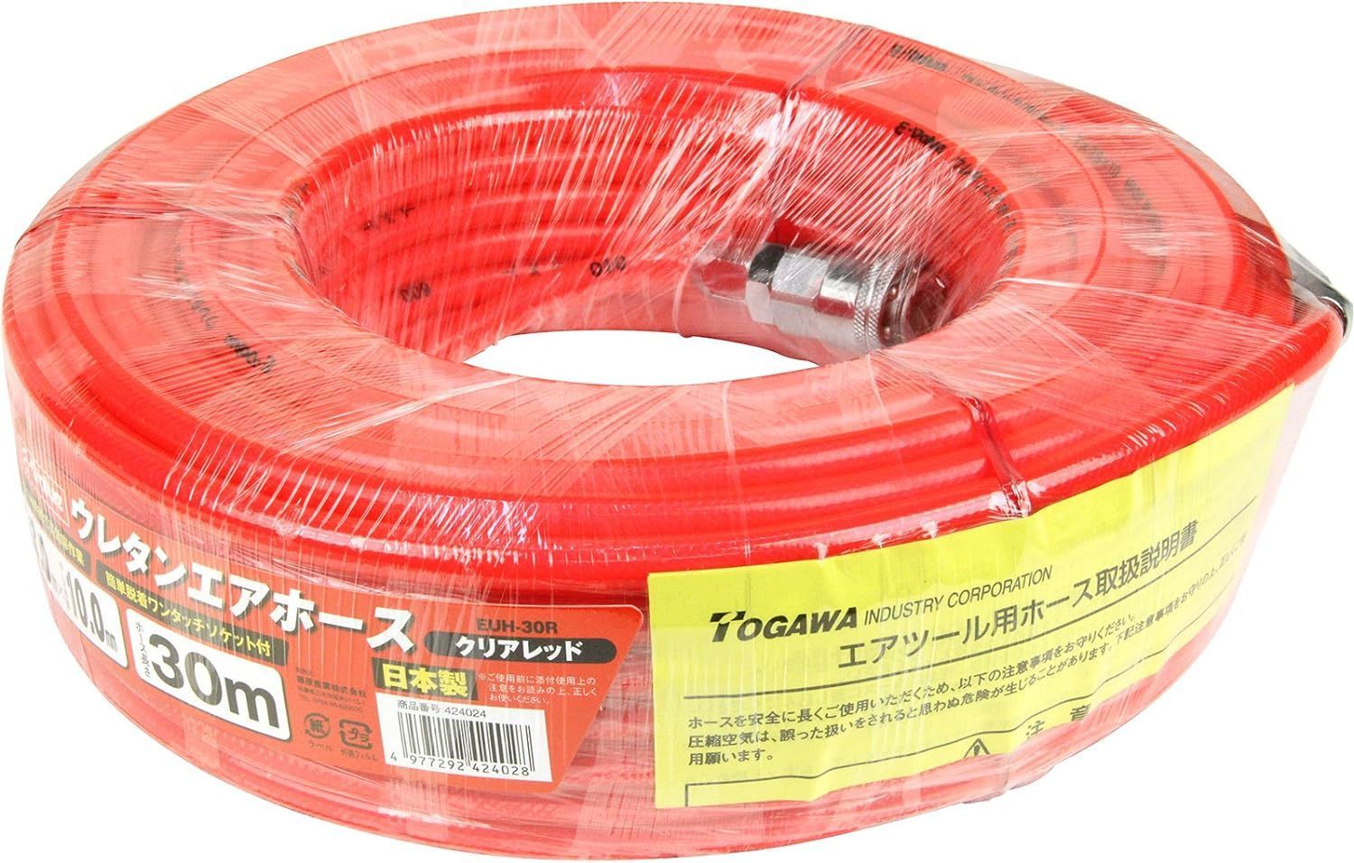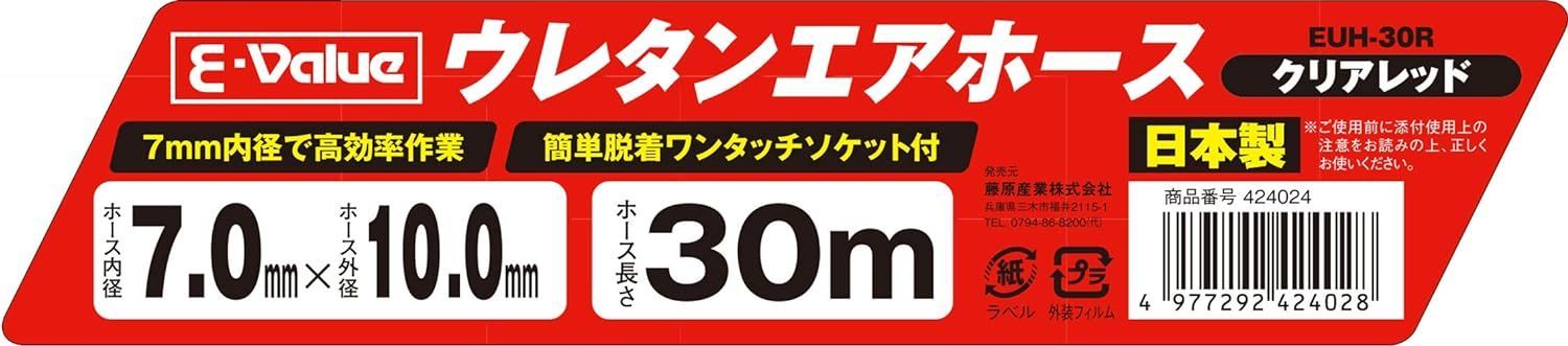 E-Value ウレタンエアホース 30m 常圧用 内径7.0mm×外径10.0mm クリアレッド EUH-30R 日本製