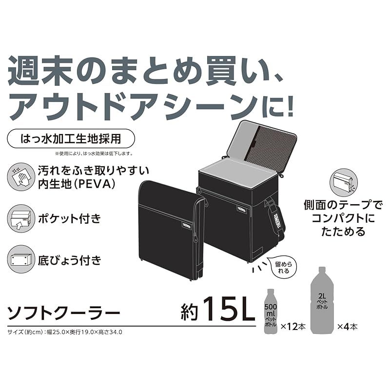 商品名:★注目商品★サーモス ソフトクーラー 15L オールブラック 保冷バッグ 5層断熱構造 折りたためてコンパクト はっ水加工生地 ボックス型 大容量モデル RFD-0151 ALB