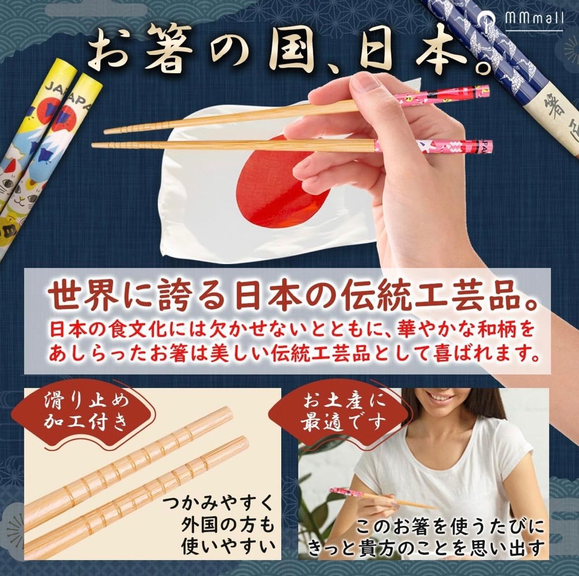 お箸をいつでも持ち歩いて頂ける素敵な収納の箸袋つき。飾り置くのも絵になる。きっとあなたの外国人のお友達も大満足の笑顔に!!箸袋はフォークやナイフの収納袋としてもお使いいただけますので渡す時にはちゃんと説明してあげてね。