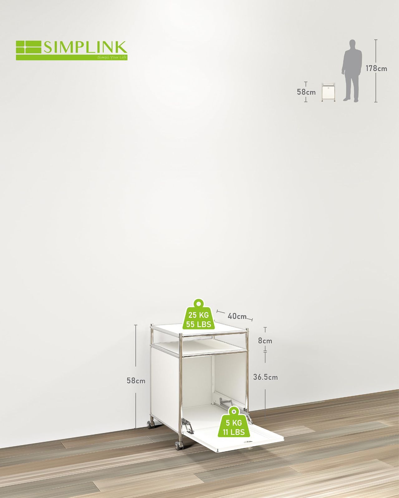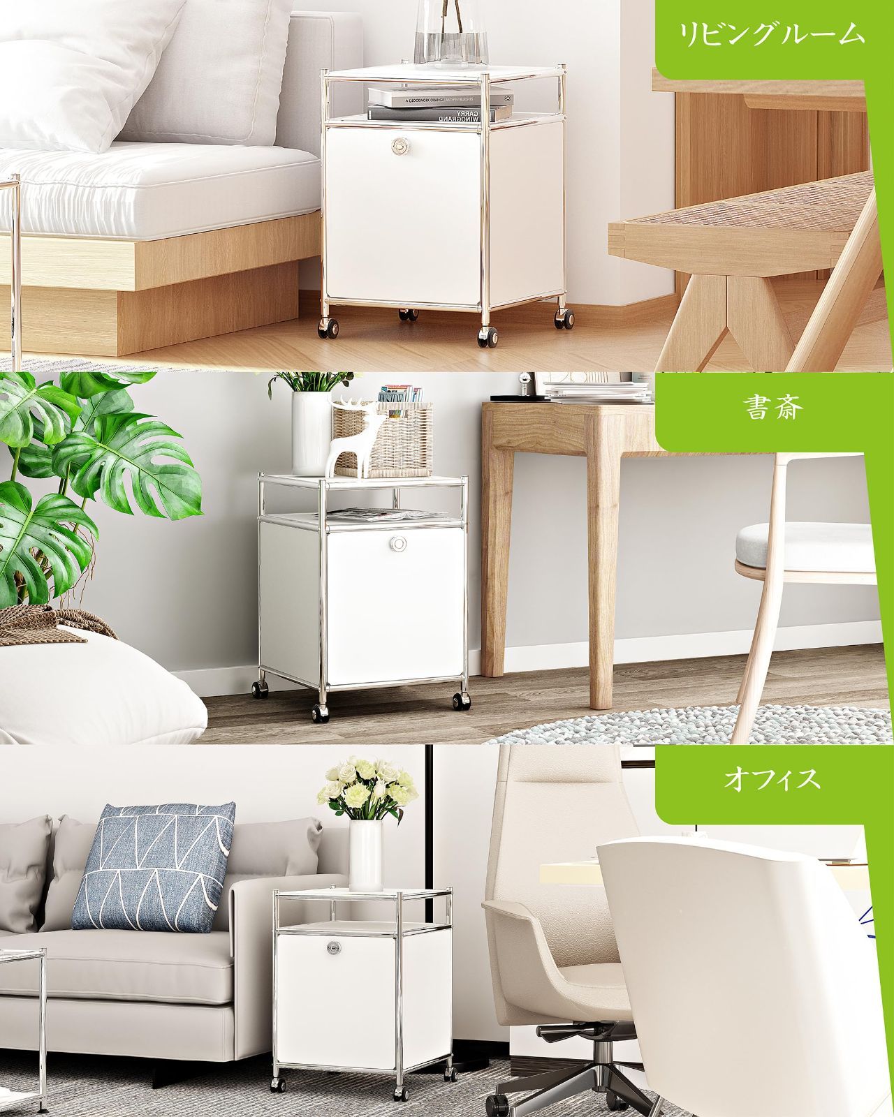 大容量収納で整理整頓が簡単: 幅40cm × 奥行40cm × 高さ58cmのコンパクト設計ながら、十分な収納スペースを確保。リビング、キッチン、オフィスなどで活躍します。