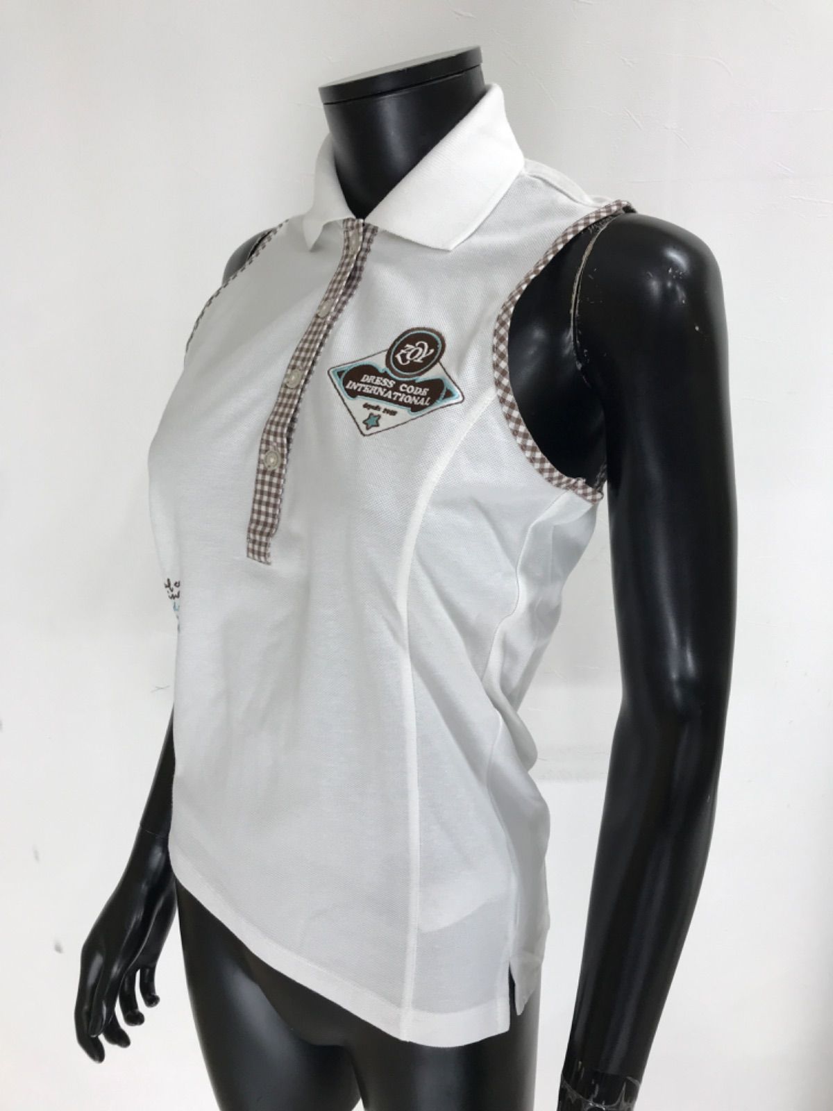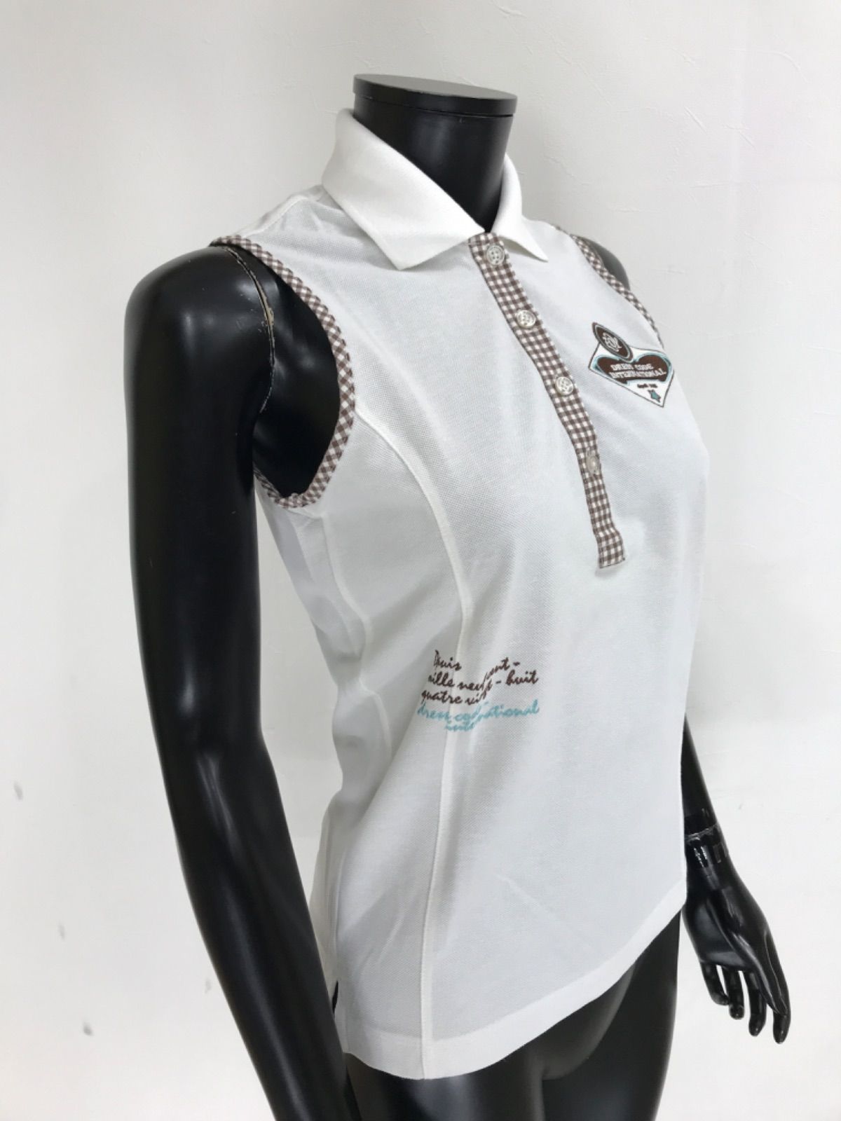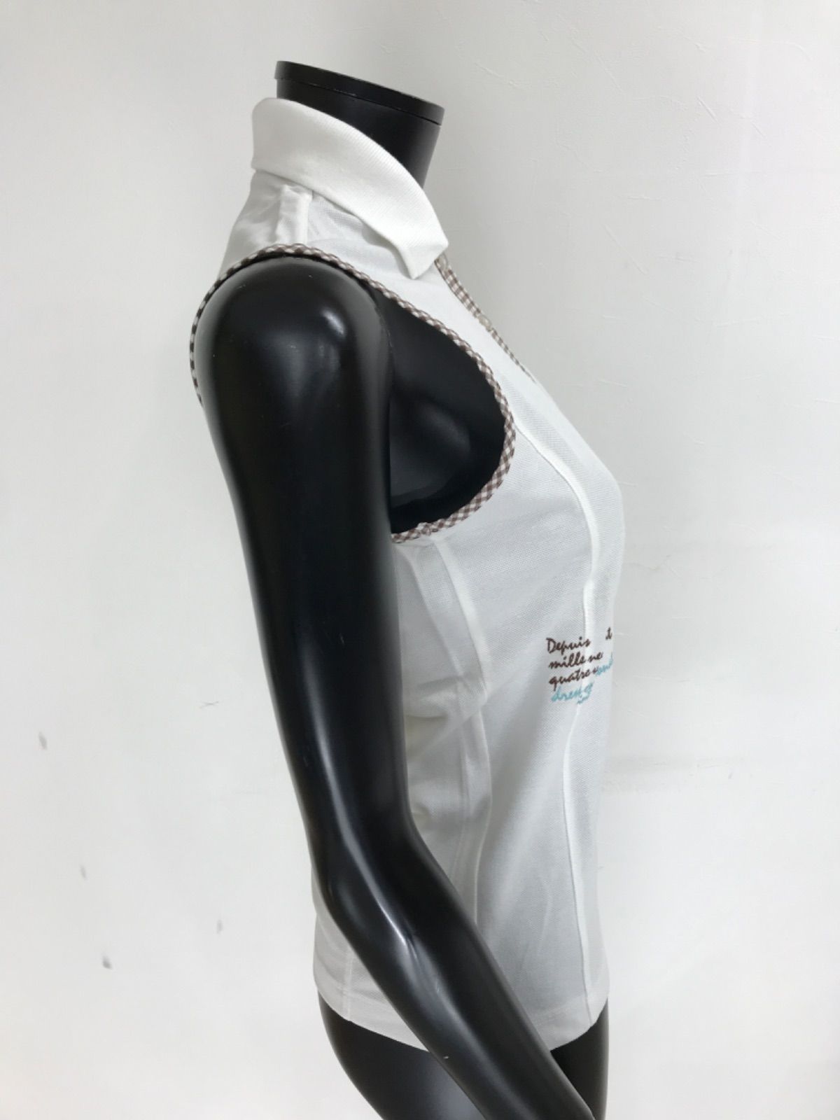 【USED】ZOY ゾーイ ポリエステル ノースリーブ ポロシャツ ロゴ刺繍 ホワイト 白 レディース 38 M ゴルフ
