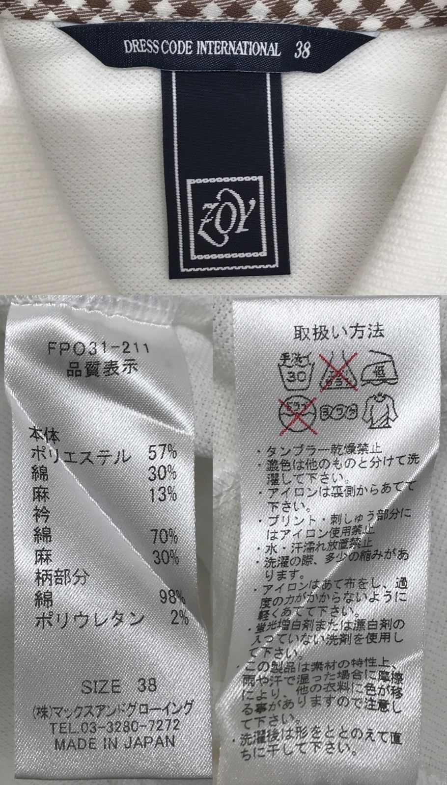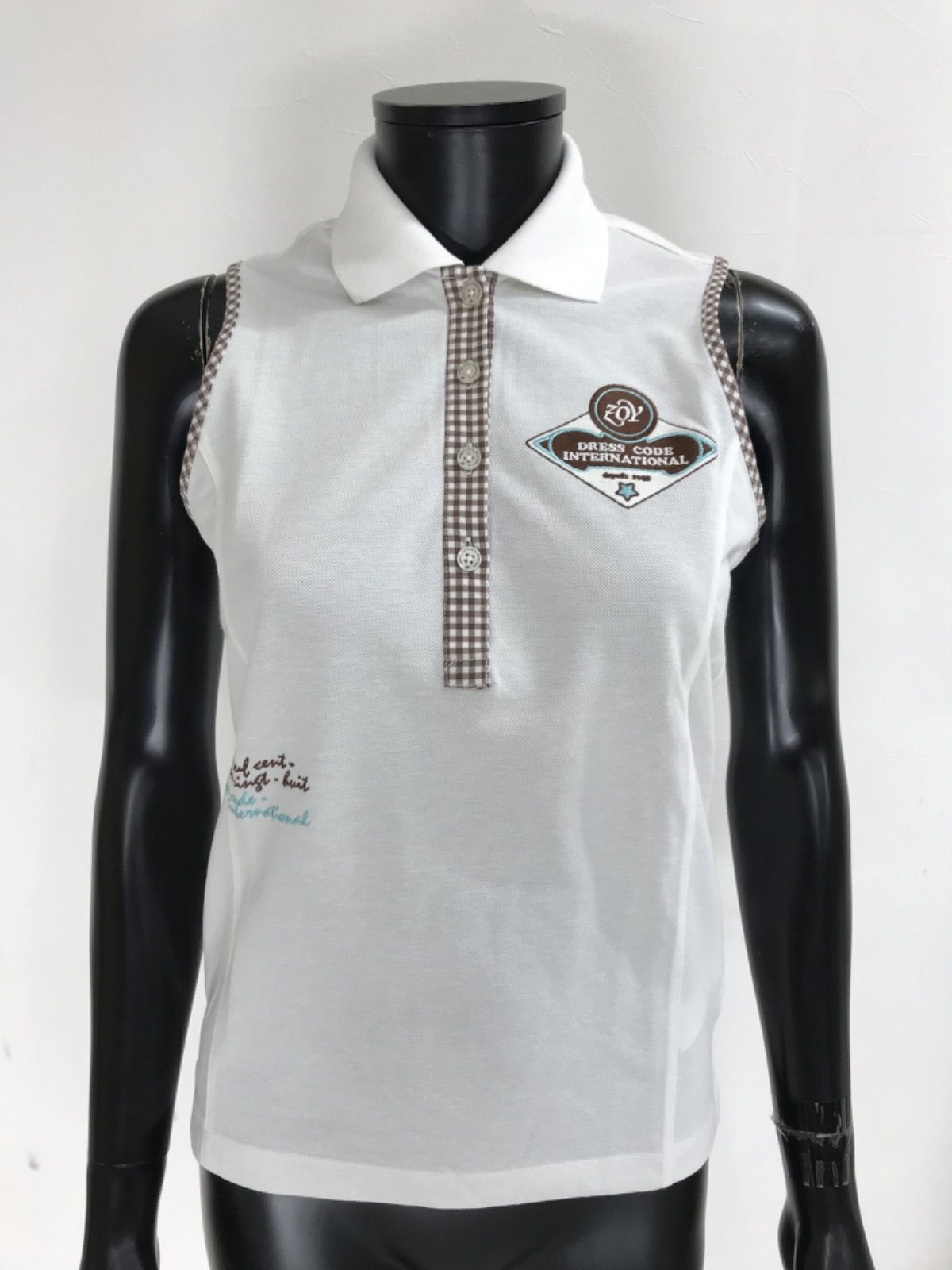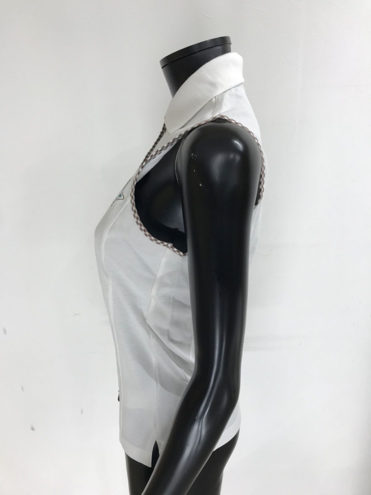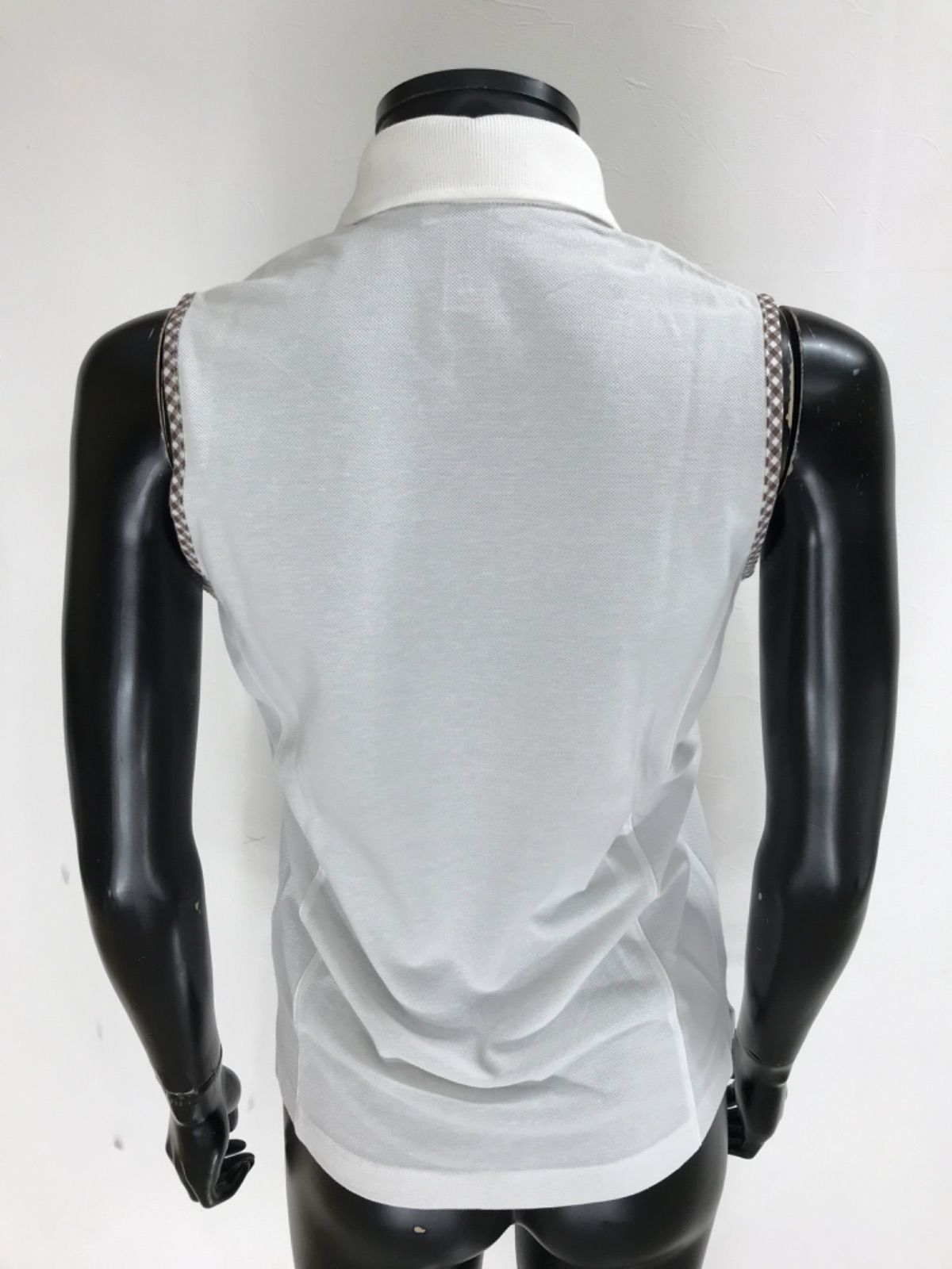 【USED】ZOY ゾーイ ポリエステル ノースリーブ ポロシャツ ロゴ刺繍 ホワイト 白 レディース 38 M ゴルフ