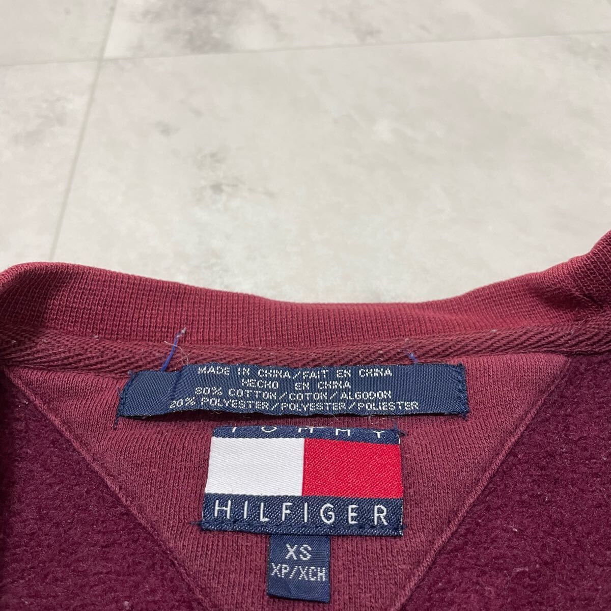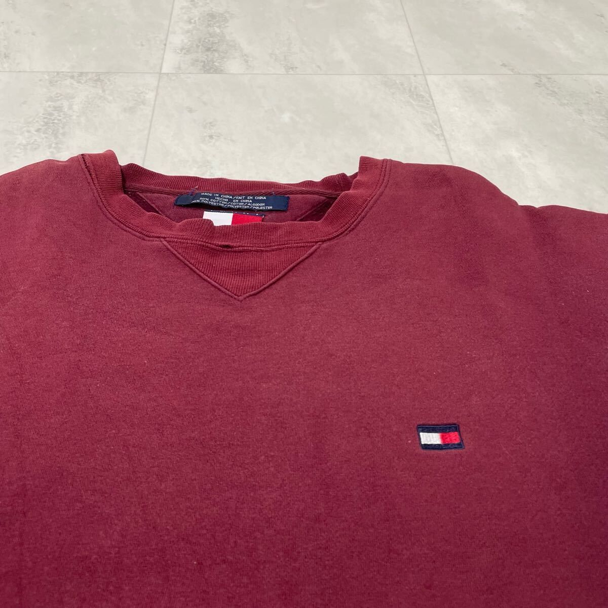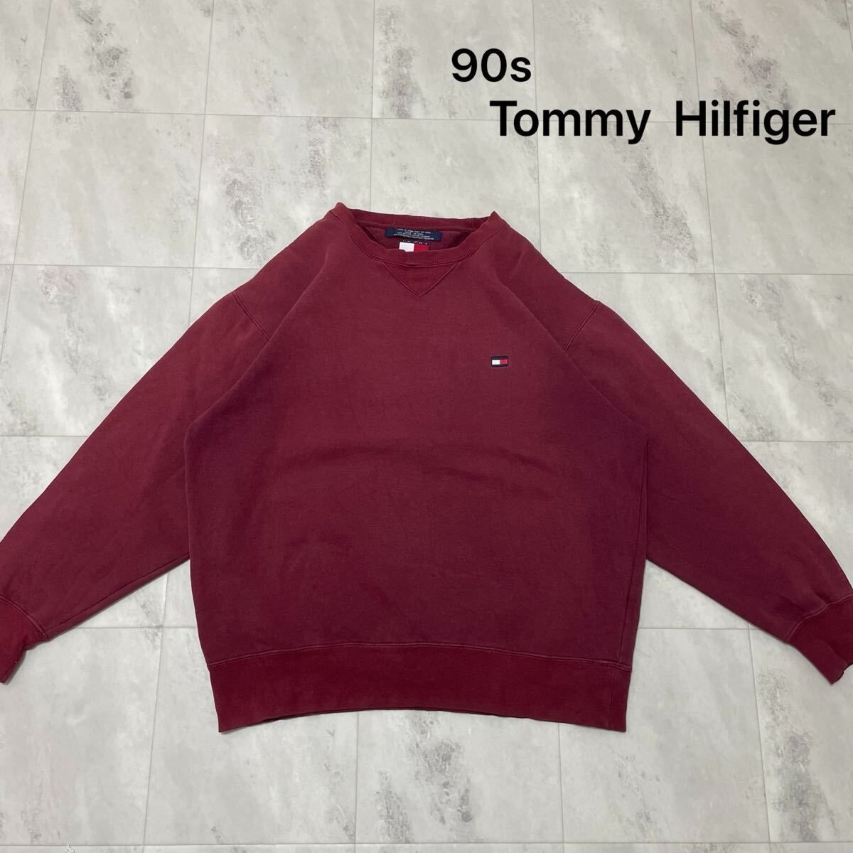 90s Tommy Hilfiger トミーヒルフィガー sweat スウェット トレーナー 刺繍ロゴ ヴィンテージ USA企画 ワインレッド サイズXS 玉FL3961