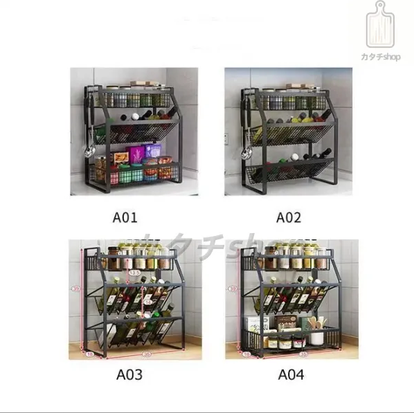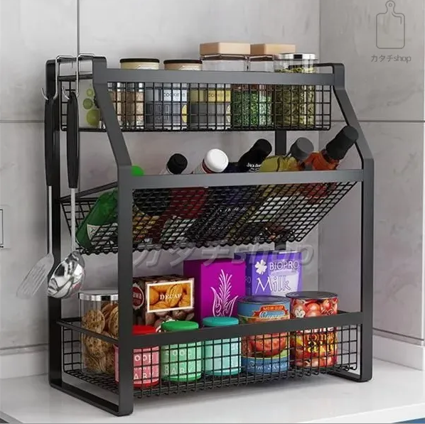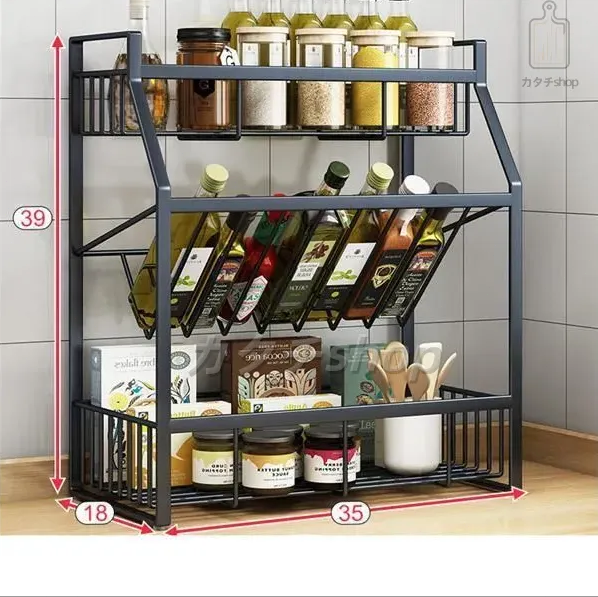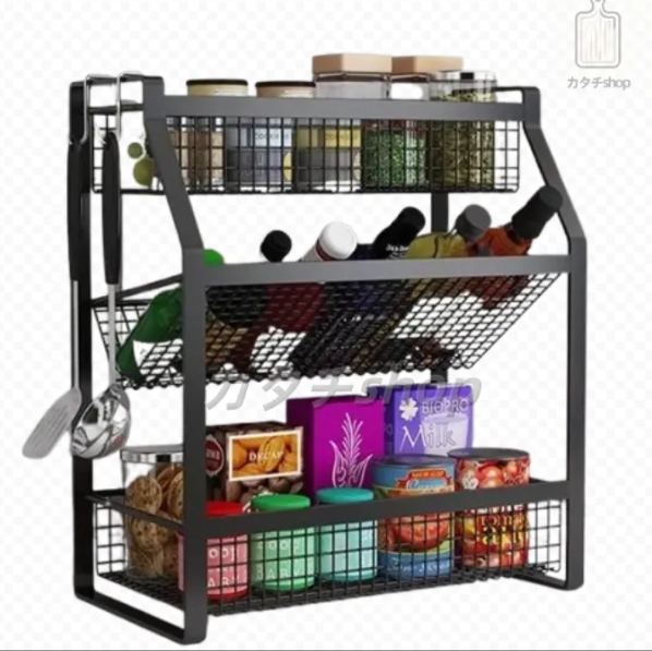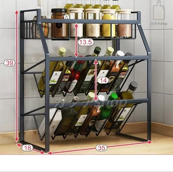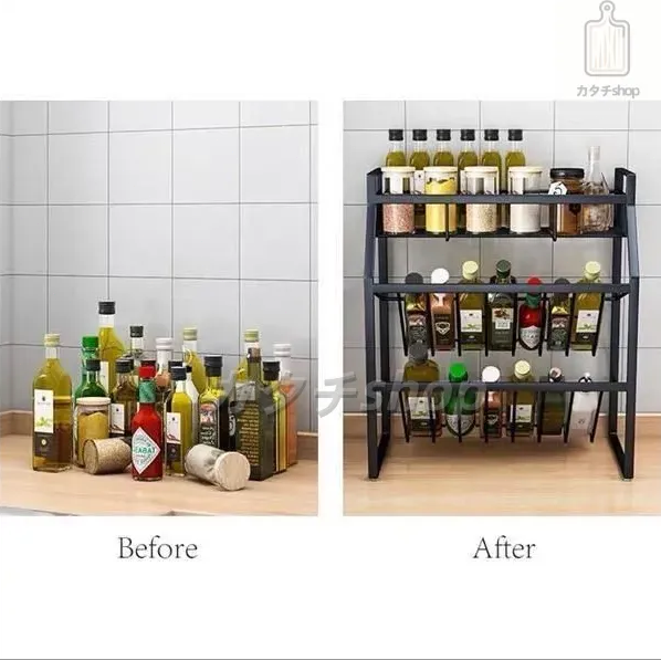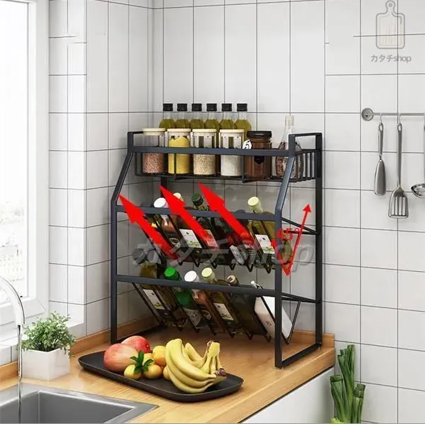 各段の高さが違うので、小ぶりなスパイスの瓶や背の高いボトルまで幅広く対応◎