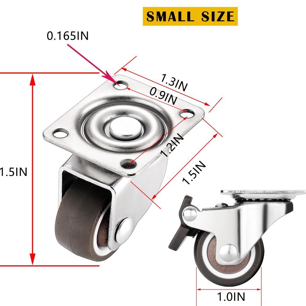 キャスターホイール 8個 1インチ 薄型回転キャスター ノイズなし ゴムベース ローリングメタルプレート キャスターホイール 小さな家具の移動用 (ブレーキ付き4個 & なし 4)