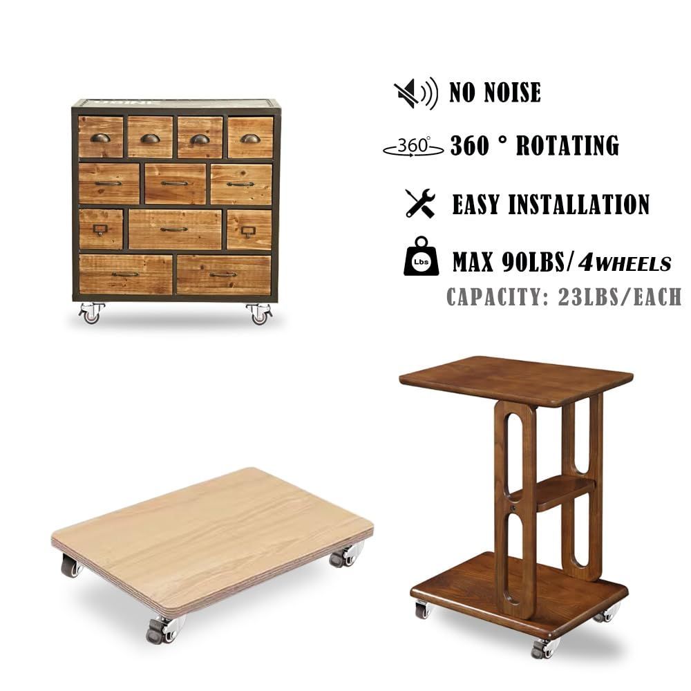 【360度回転】回転キャスターホイールのスイベルトッププレートは360度回転でき、小さなゴム製キャスターホイールは方向転換に即座に反応し、角を曲がったり、家具を横に動かしたりしやすくなります。