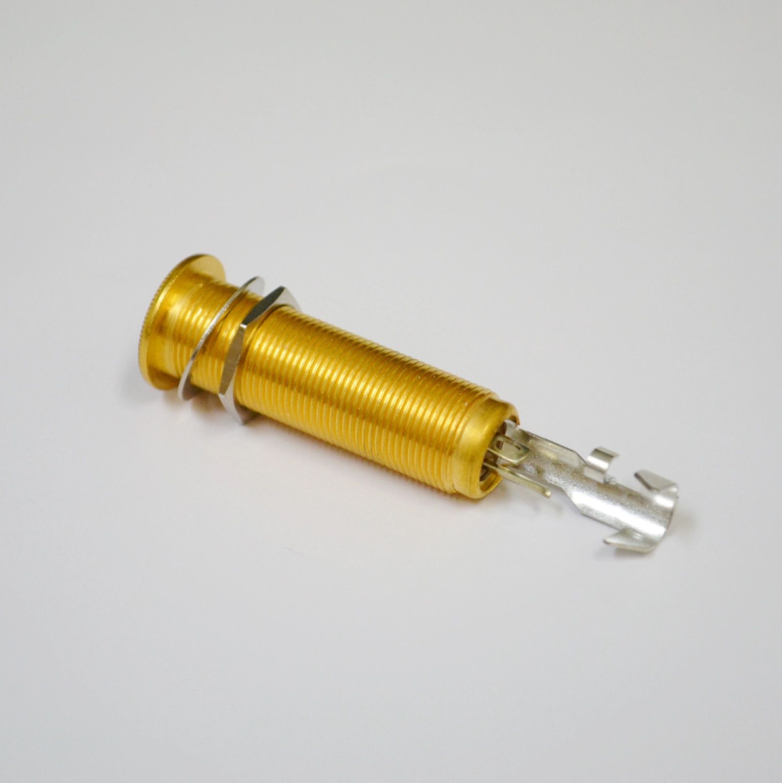 ジャック全体にネジ切りがされている為、薄いプレートやボディサイドへの直付けジャックとして使用が可能です。