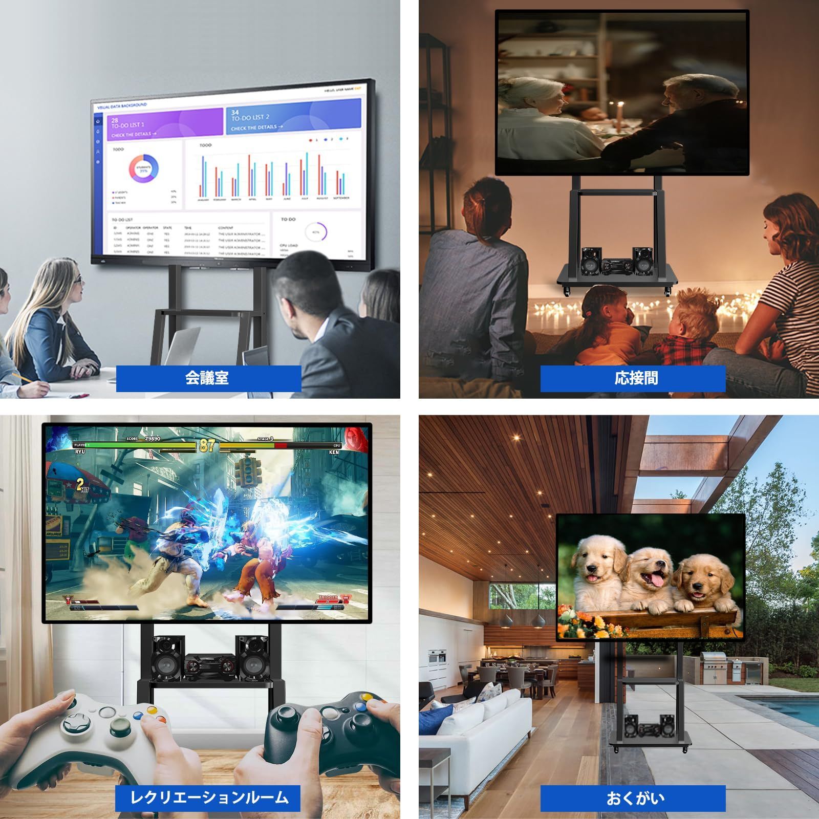 TETVIK テレビスタンド 32~100インチ 液晶テレビに対応 壁寄せ テレビ台 VESA規格900x600mmまで 大型 移動式 ハイタイプ tvスタンド 耐荷重80kg 棚板付き ブラック 高さ調節可能 家用 会社 ビジネス展示用