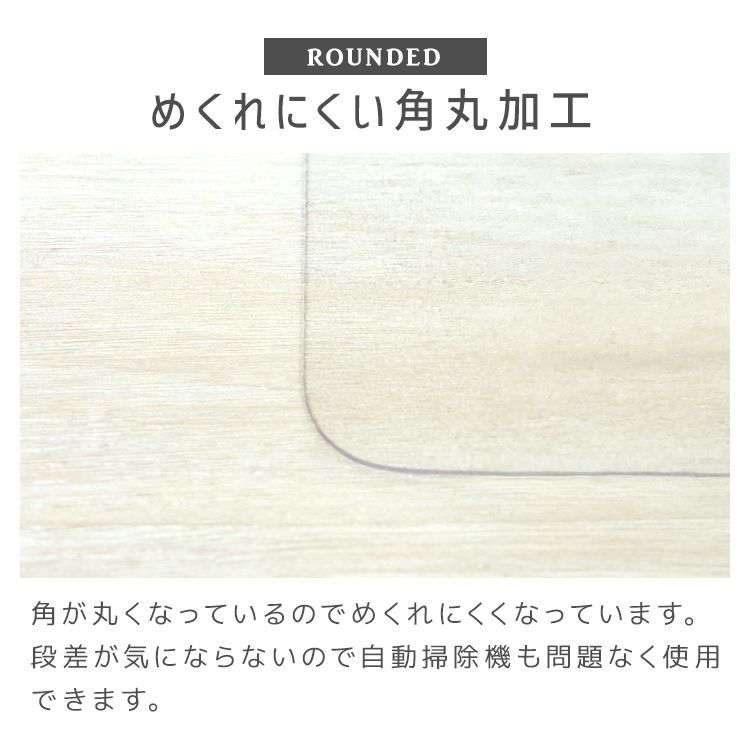 角丸設計でめくれにくく、ロボット掃除機も問題なく使用できます。