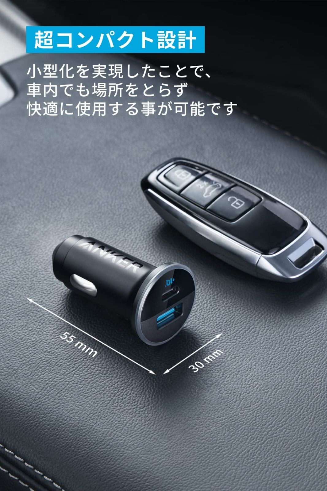Anker 323 Car Charger (52.5W) (USB PD対応 52.5W 2ポート USB-C カーチャージャー) 【PowerIQ 3.0搭載 / コンパクトサイズ】iPhone Galaxy Android スマートフォン ノートPC iPad 各種 その他機器対応 各種対応