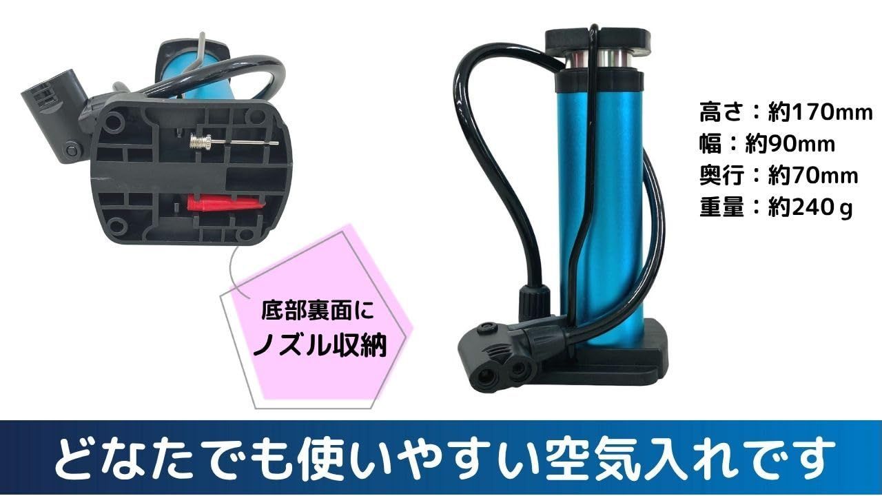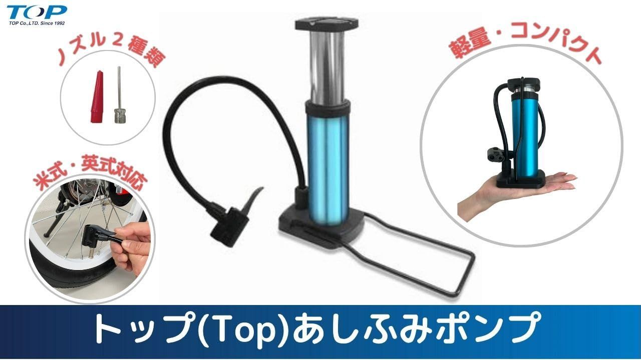 トップ(Top) フットポンプスリム足ふみ ブルー 自転車 空気入れ エア ポンプ 英式 米式 ママチャリ 子供自転車 ボール プール 浮輪 小型 省スペース