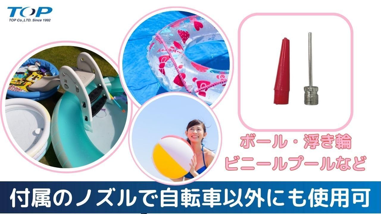 【ボール・ビーチボール・浮輪にも】浮き輪アダプタとボール用アダプタ付属。足ふみポンプなら、大きい浮輪や庭用プールなどにもらくにエア注入。アダプタは底面収納なので紛失や保管場所の心配がありません。