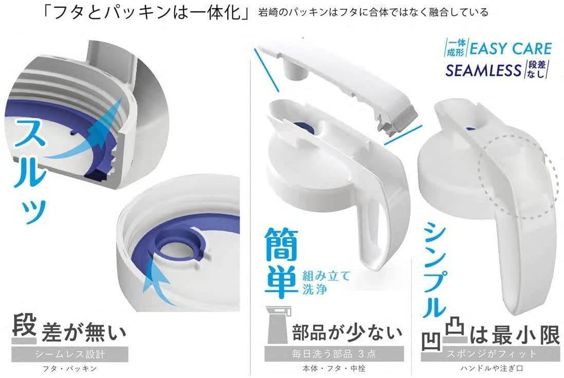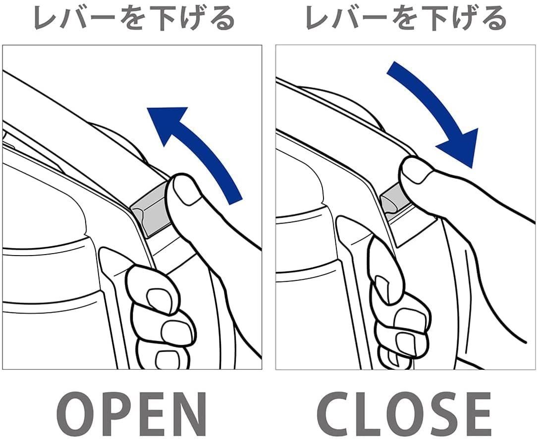 ●サイズ:約152×103×245mm●重量:308g●材質: 本体/AS樹脂、フタ・ハンドル/ポリプロピレン、中栓(キャップ)・レバー/ABS樹脂、パッキン/熱可塑性エラストマー●電子レンジの使用:不可●食洗機の使用:不可●生産国:日本