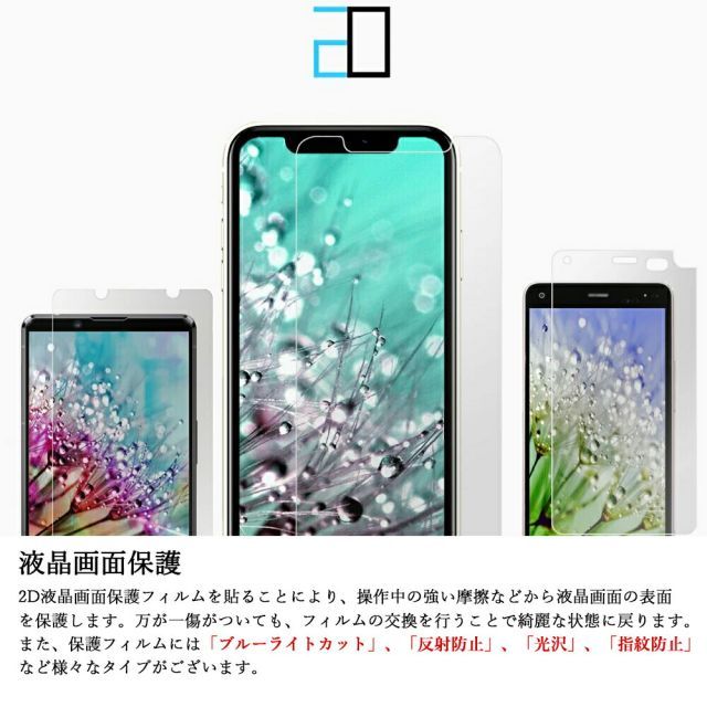 2D液晶画面保護フィルム液晶画面を強い摩擦から守ることだけでなく、指紋が付きにくい仕様となっております。