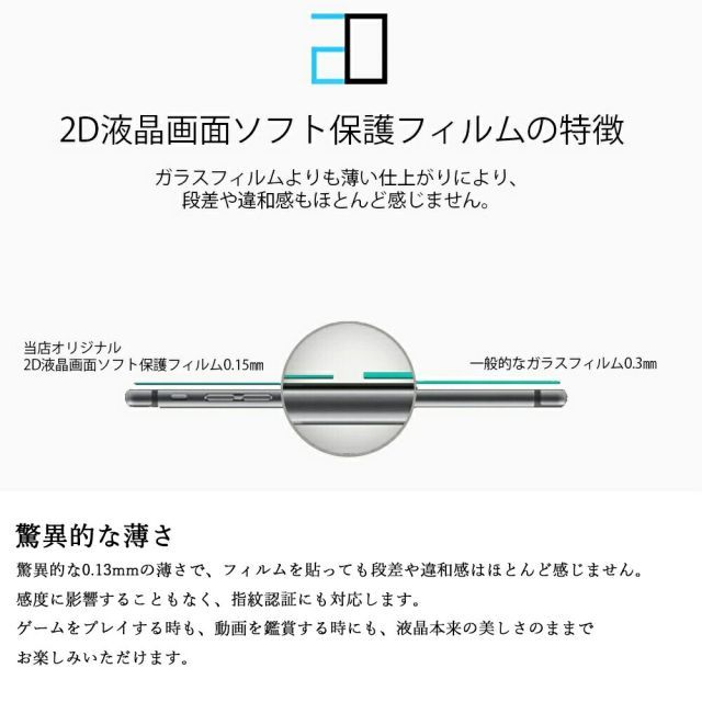 ・驚異的な薄さ・割れない・衝撃吸収・ケースに干渉しない・貼り付け簡単・お得な2枚セット