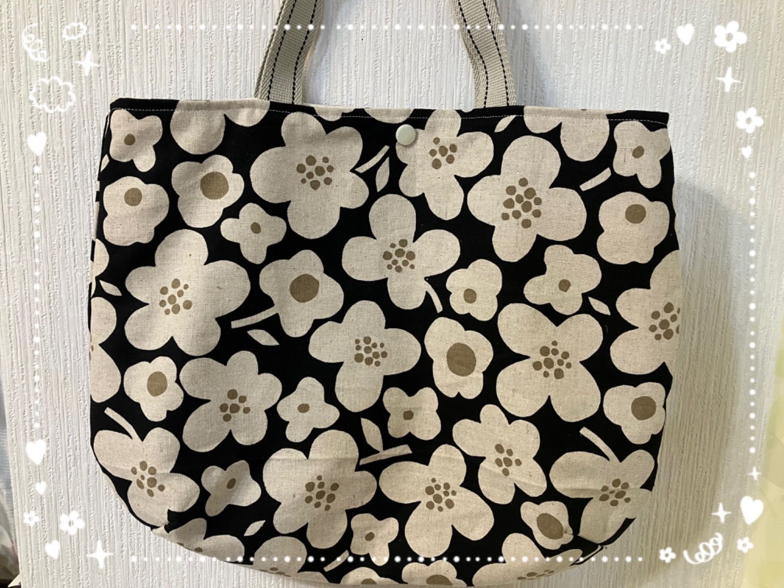 まーるいトートバッグ ハンドメイド 裏地付 大きめポケット 持ち運べる