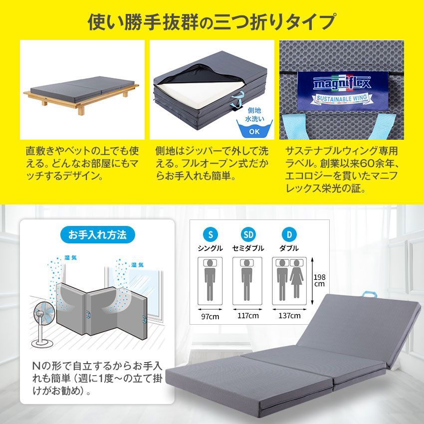 80cm 幅 マニフレックス サステナブルウィング セミシングル 【 正規店 7年 保証 】 マットレス 三つ折り 80×198×10cm イタリア製 敷き布団 やや 硬め マニフレックスマットレス メッシュウィング 類似 正規品 高反発マットレス 腰痛