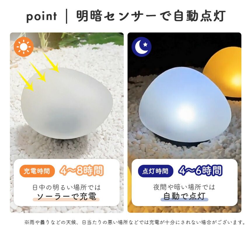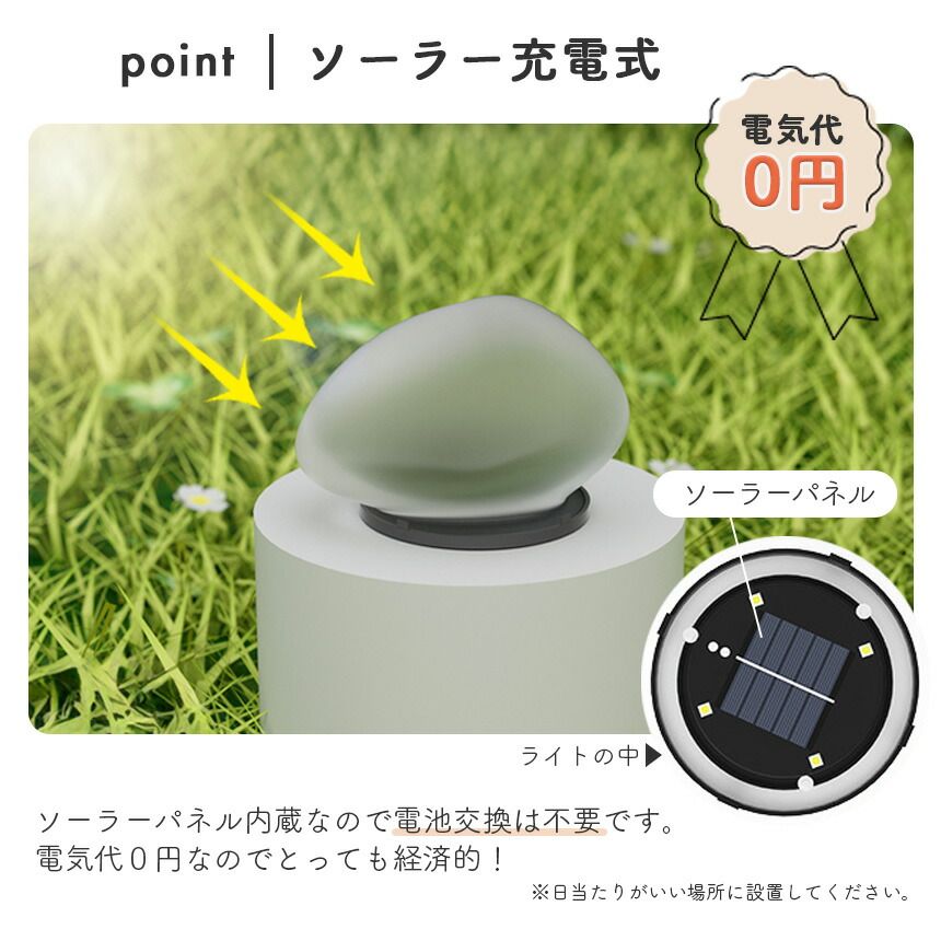 日中の明るい場所ではソーラーで充電、夜間や暗い場所では自動で点灯します。