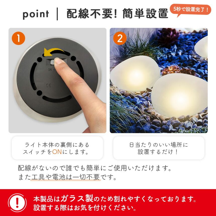 すりガラスのような本体から柔らかい光に癒される石型ライトです。