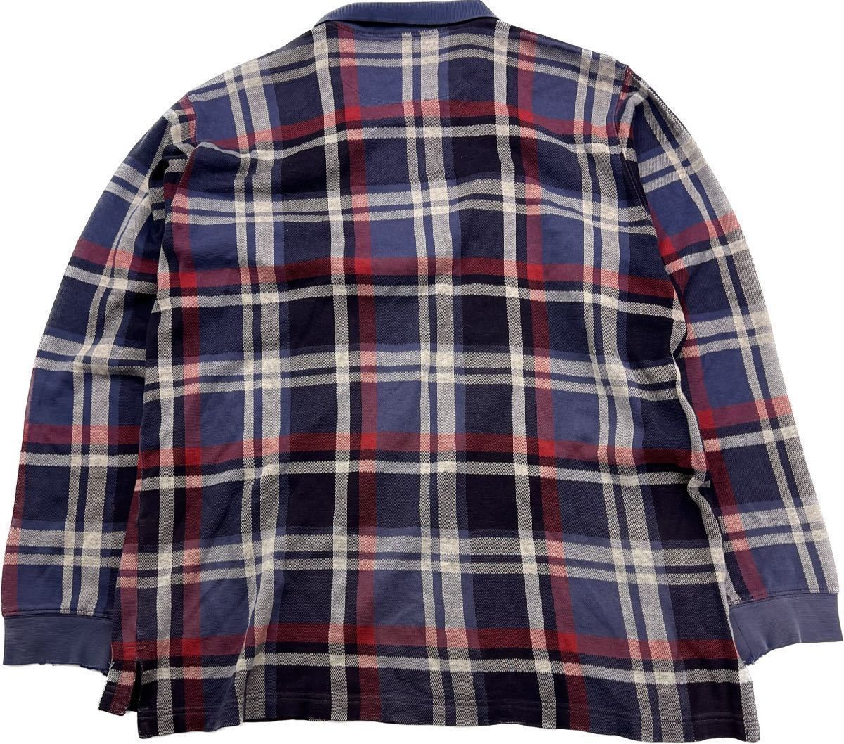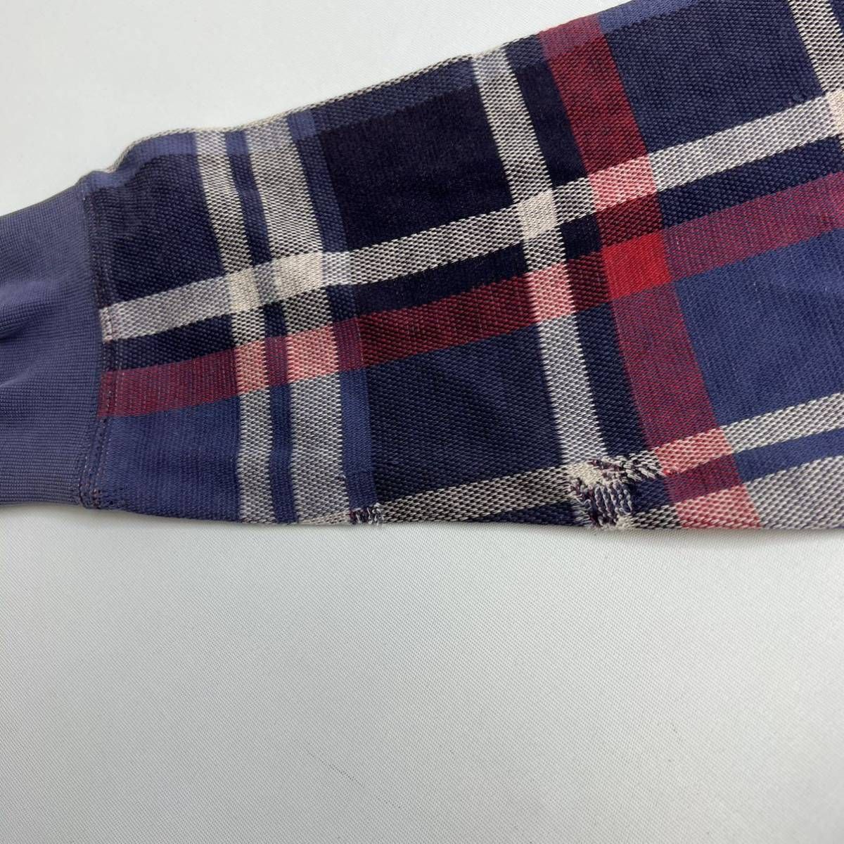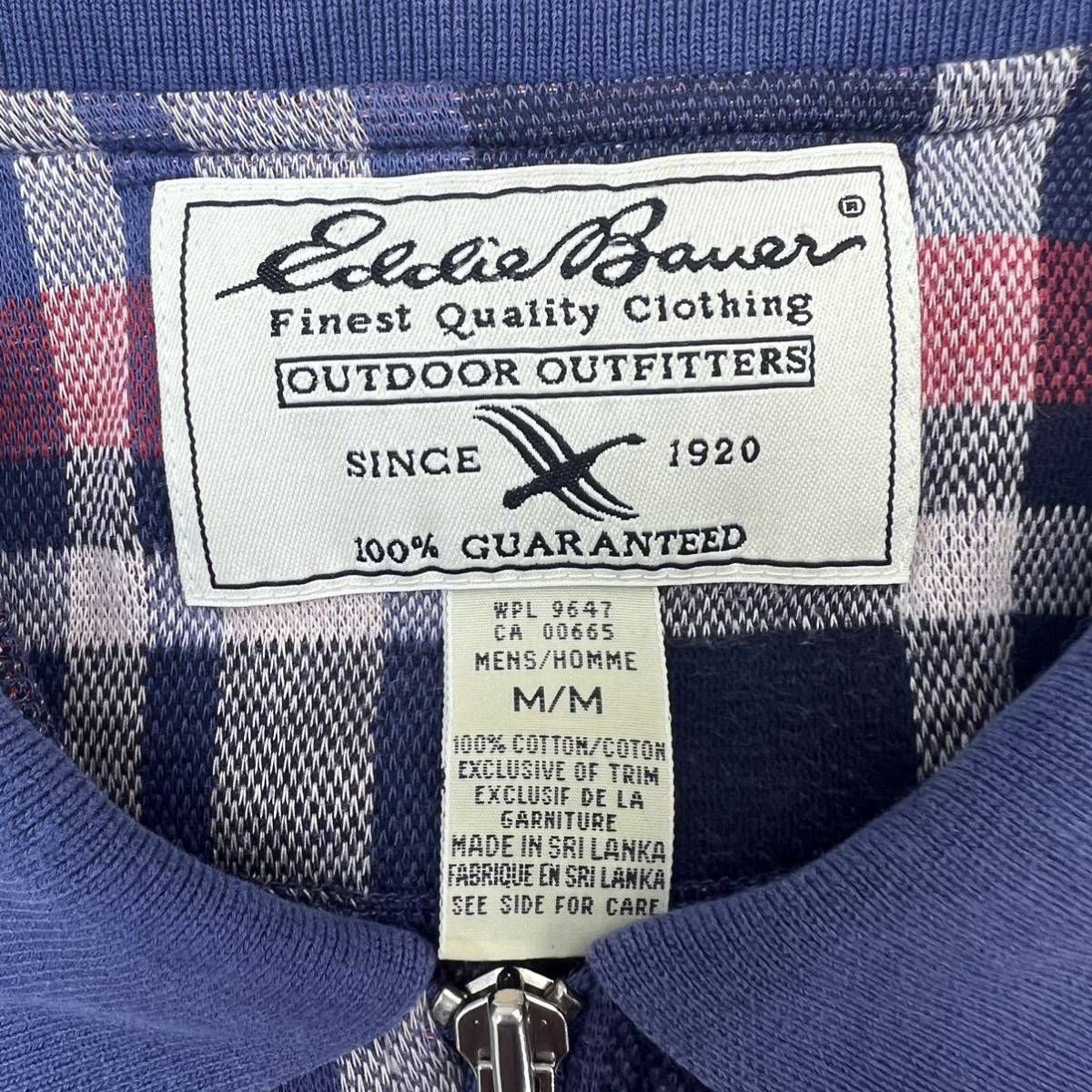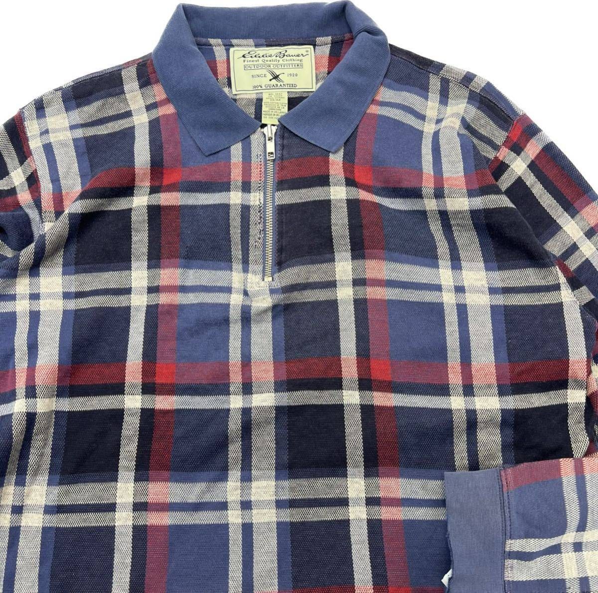 Eddie Bauer ☆ 長袖 デザイン チェック シャツ ネイビー ブルー レッド M アメカジ アウトドア ストリート 古着 エディーバウアー■CD267