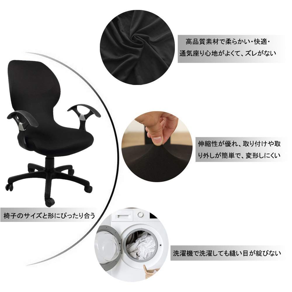 popluxy オフィスチェアカバー 椅子カバー チェアカバー オフィス椅子カバー 座面部分と背もたれ 一体式 伸縮素材 洗濯可能 着脱可能