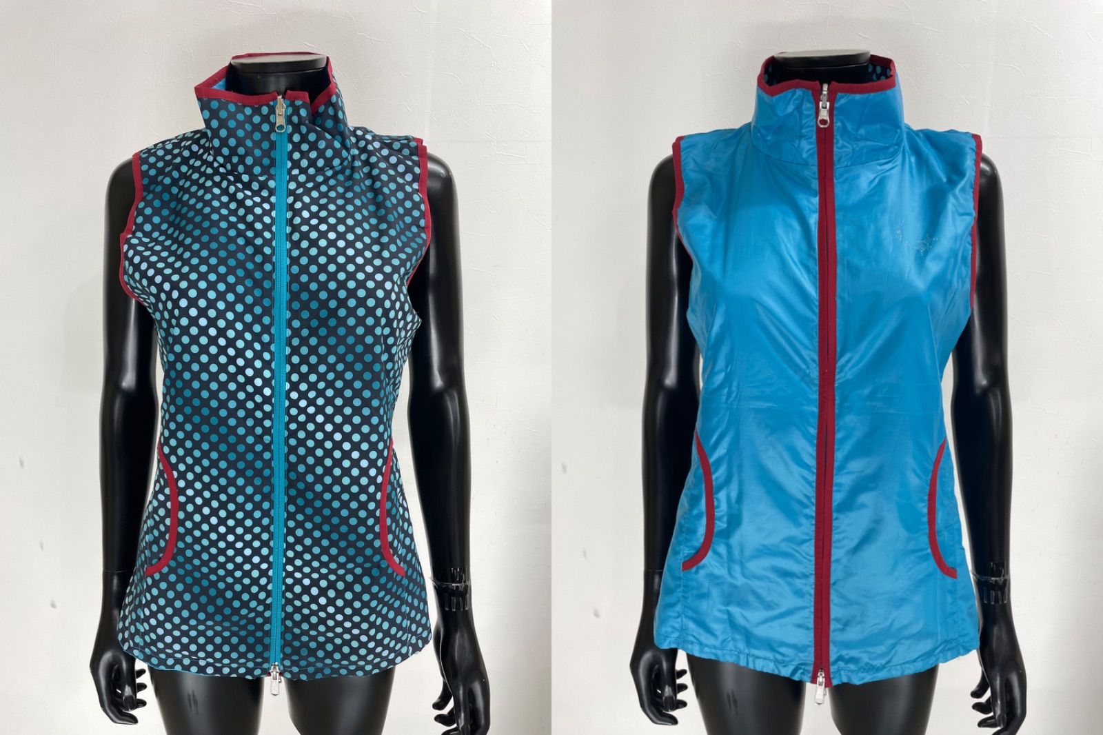 【USED】XXIO ゼクシオ ポリエステル リバーシブル ダブルジップ ハイネック ベスト ドット柄 ブルー系 青 レディース M ゴルフウェア