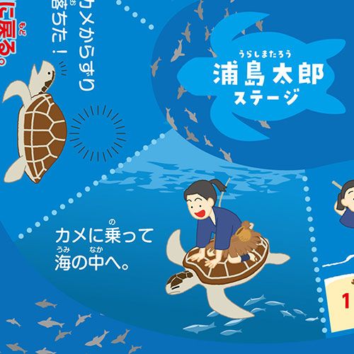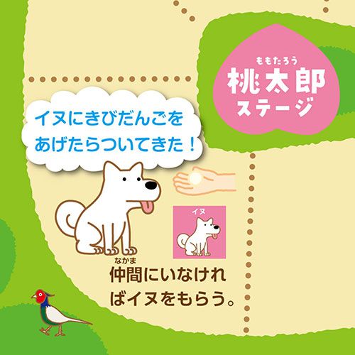 昔話の世界を冒険できるすごろくです。5つの昔話ステージ(桃太郎、一寸法師、ウサギ(因幡の白兎・うさぎとかめ)、浦島太郎、一休さん)を組み合わせて遊べます。立体的な新感覚のすごろくです。梅花女子大学こども教育学科とアーテックとの産学連携によるコラボ商品です。