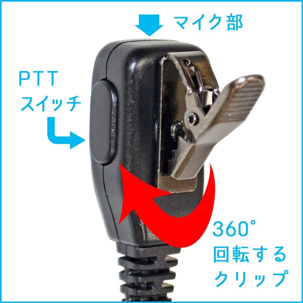●PTTスイッチとマイクが一体型なので、本体を持たなくてもイヤホンマイクのPTTスイッチを押すだけで交信可能です