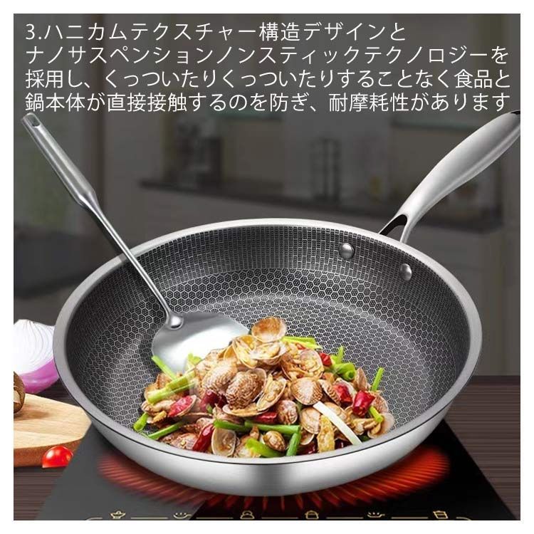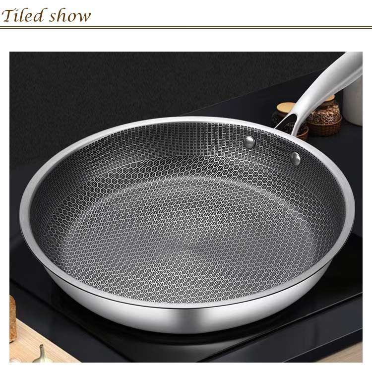 3.ハニカムテクスチャー構造デザインとナノサスペンションノンスティックテクノロジーを採用し、くっついたりくっついたりすることなく食品と鍋本体が直接接触するのを防ぎ、耐摩耗性があります。